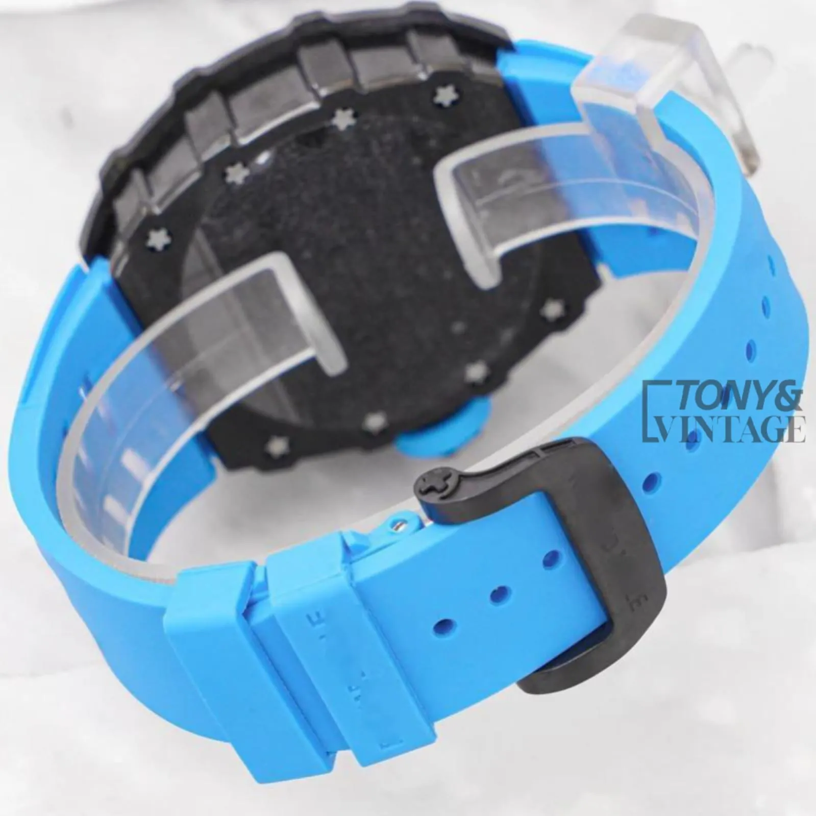 "Automatic Black Watch With Skeleton Dial and Blue Rubber Strap "“Automatic Black Watch With Skeleton Dial and Blue Rubber Strap “