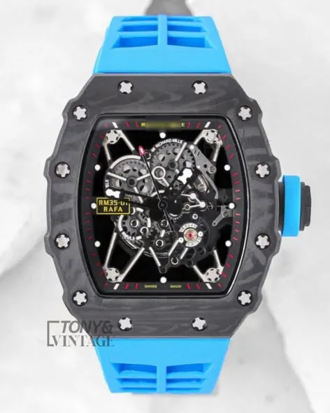 “Automatic Black Watch With Skeleton Dial and Blue Rubber Strap “