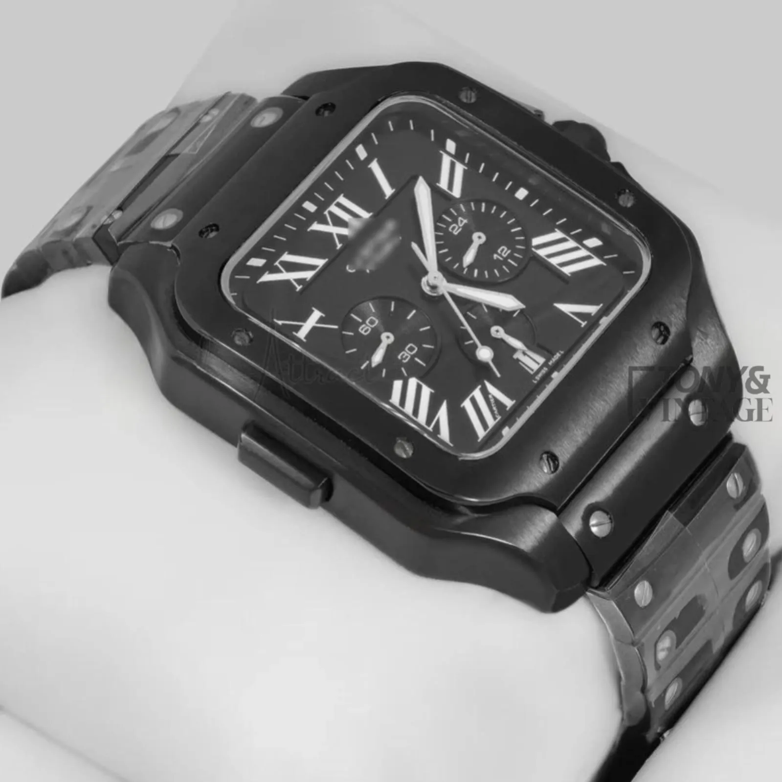 Chronograph All Black Watch With Matching Dial and ChainChronograph All Black Watch With Matching Dial and Chain