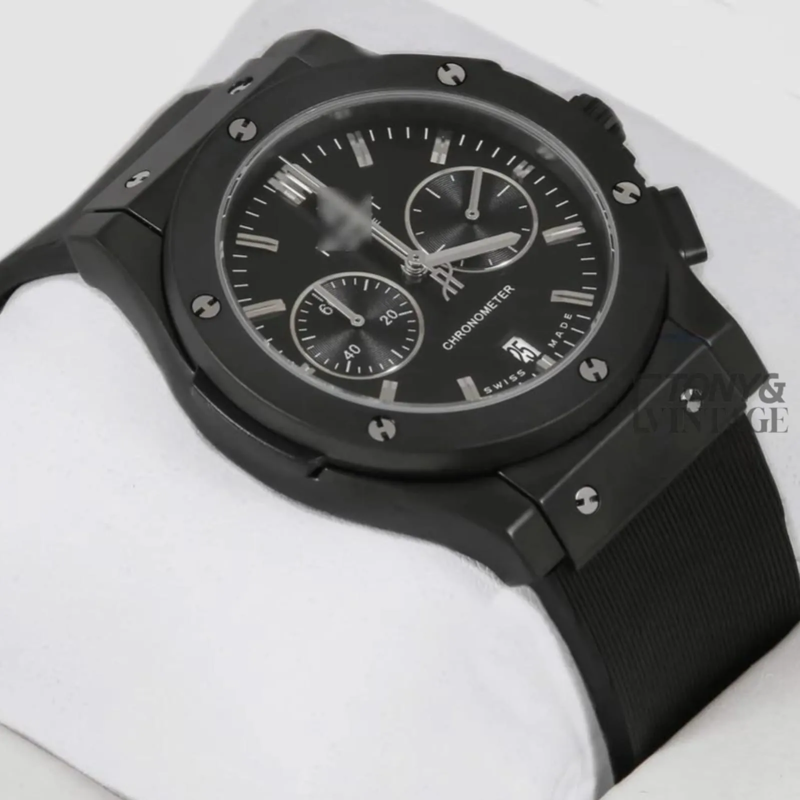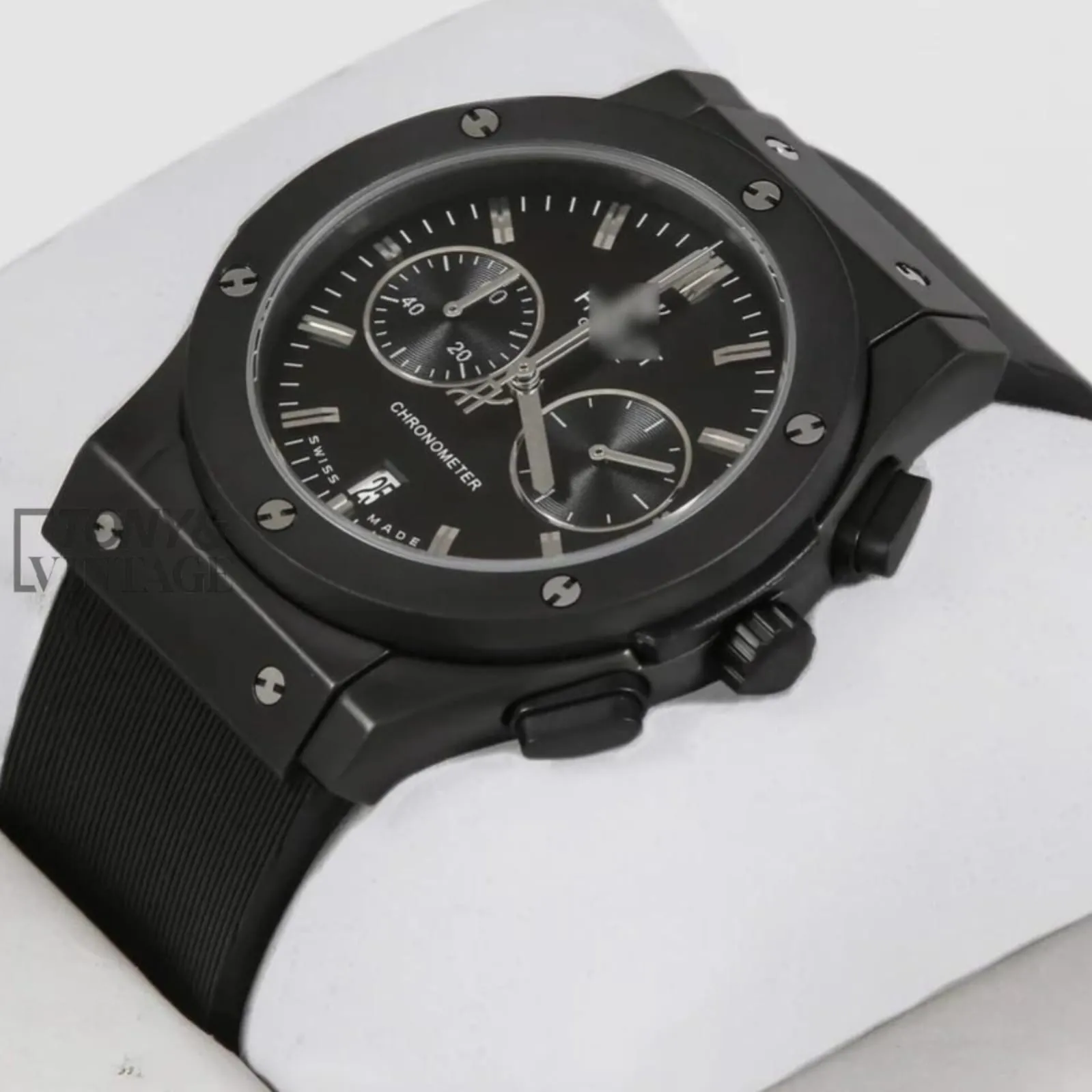 Chronograph Black Case With Black Dial & Black Rubber Strap