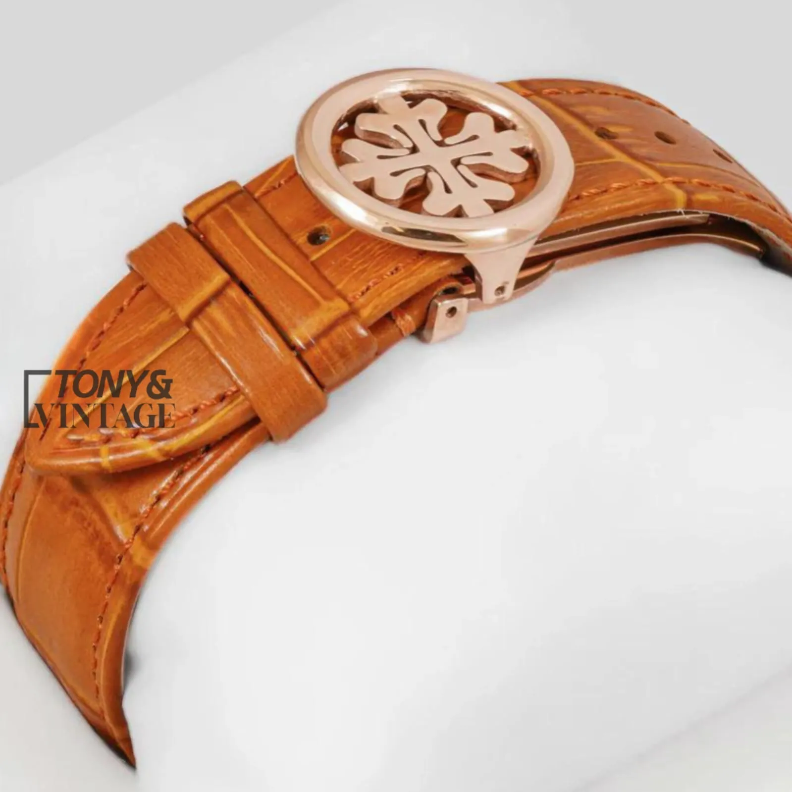 Chronograph Rose Gold Case Silver Dial Brown Leather Strap