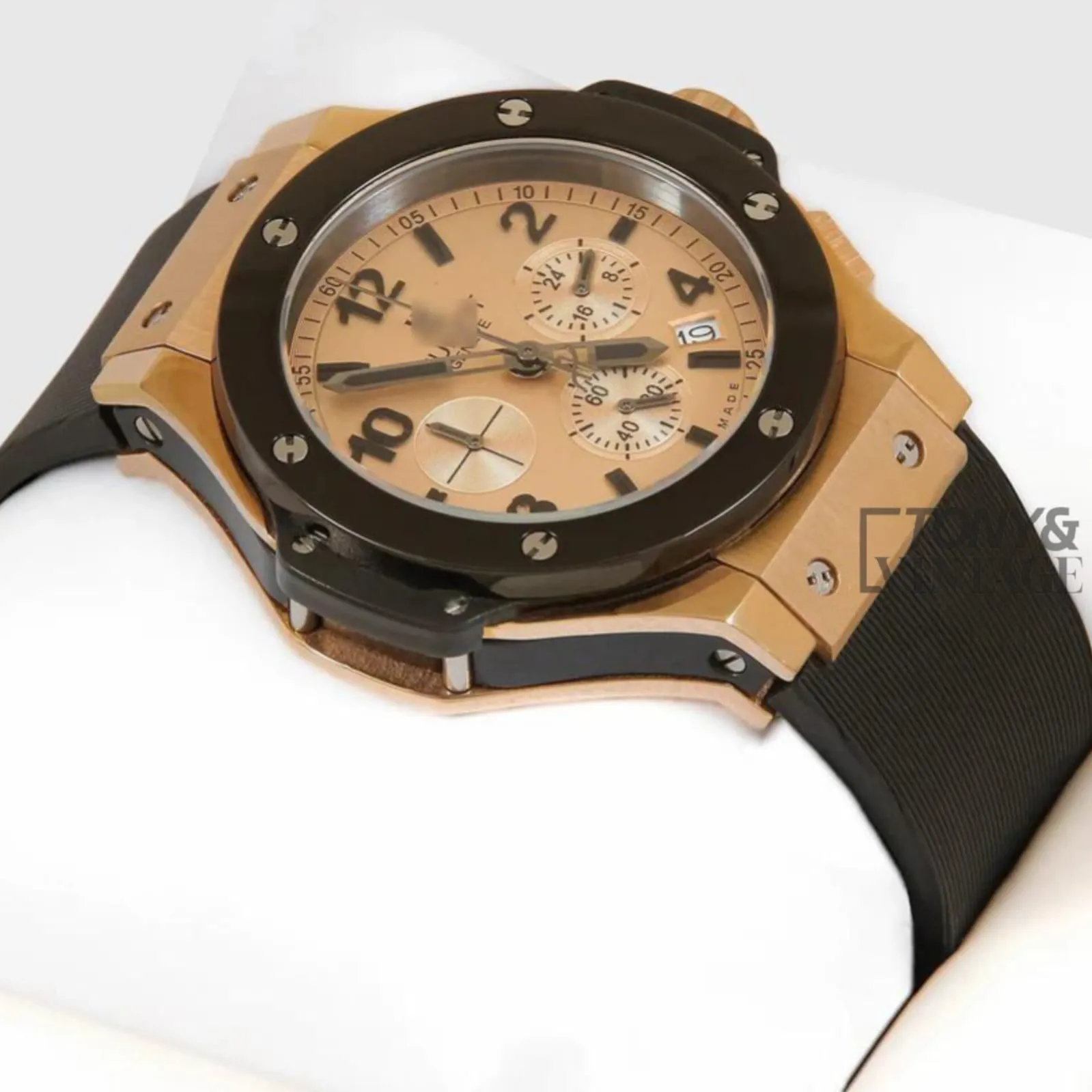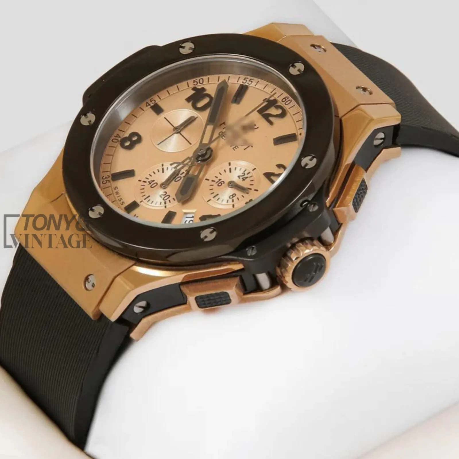 Chronograph Rose Gold Watch with Dial and Black PVC Strap