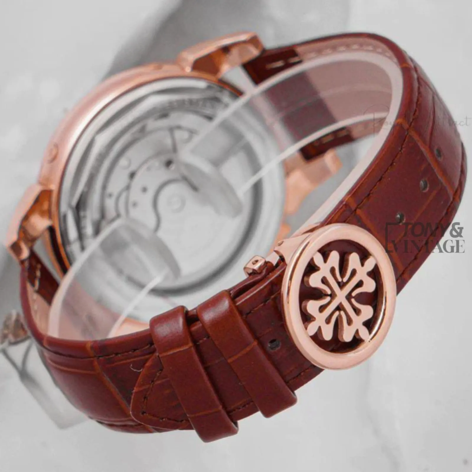 Chronograph Rose Gold Watch with Gray Dial and Leather Strap