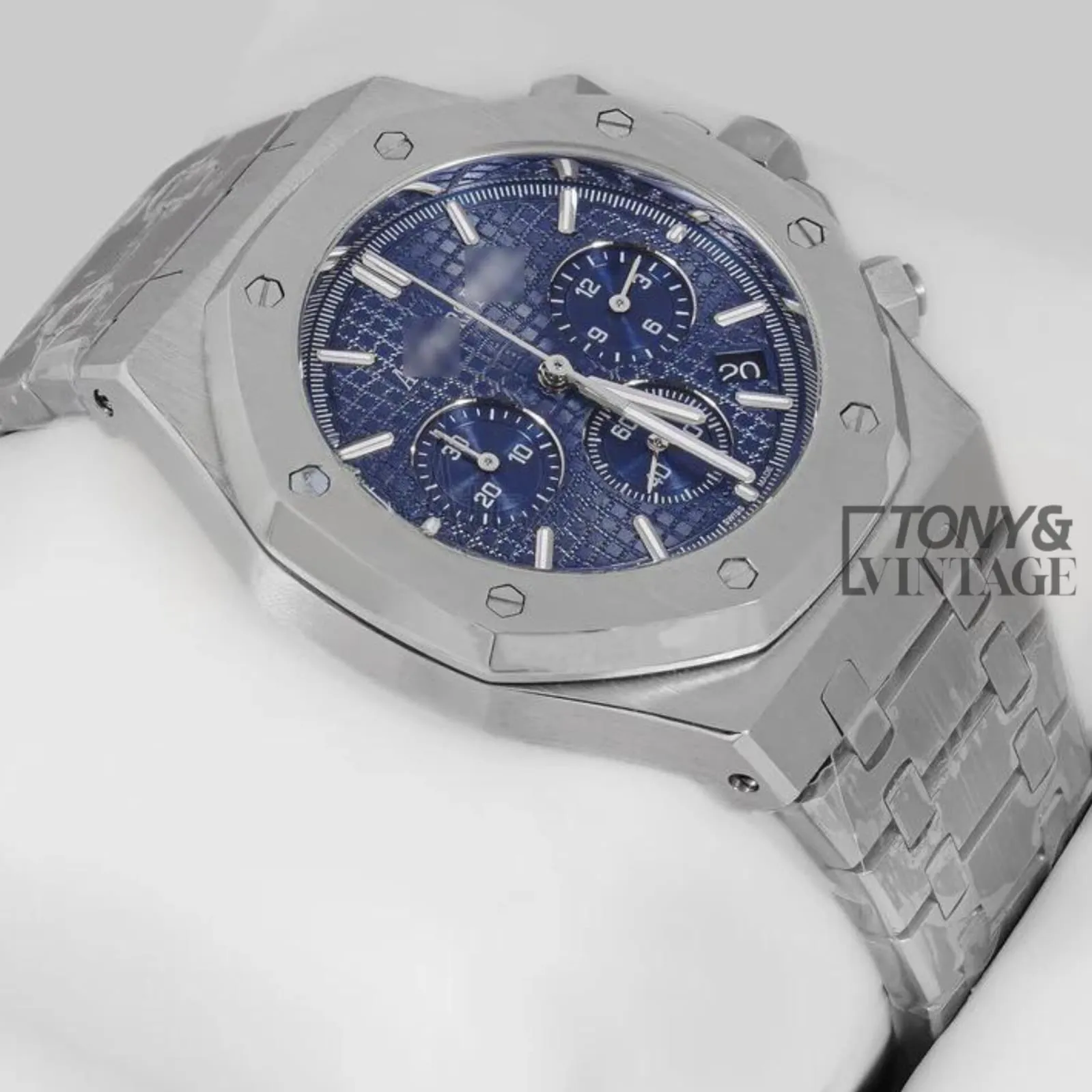 Chronograph Silver Blue Texture Dial Chain Watch