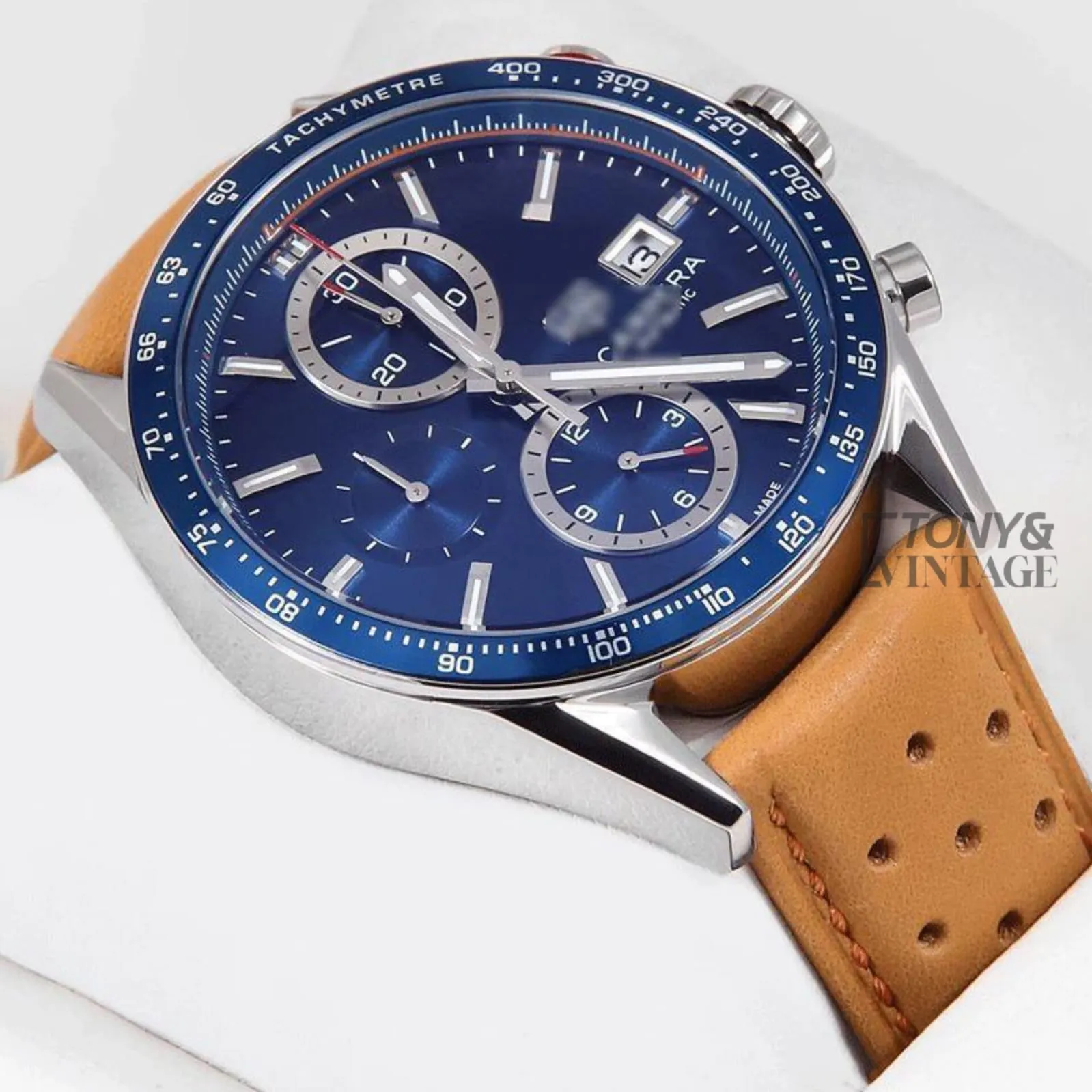 Chronograph Silver Case with Blue Dial & Brown Leather Strap Watch