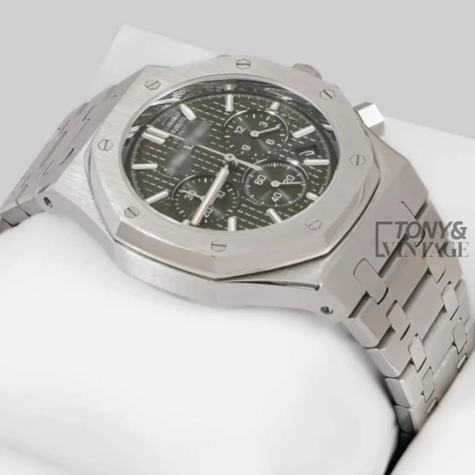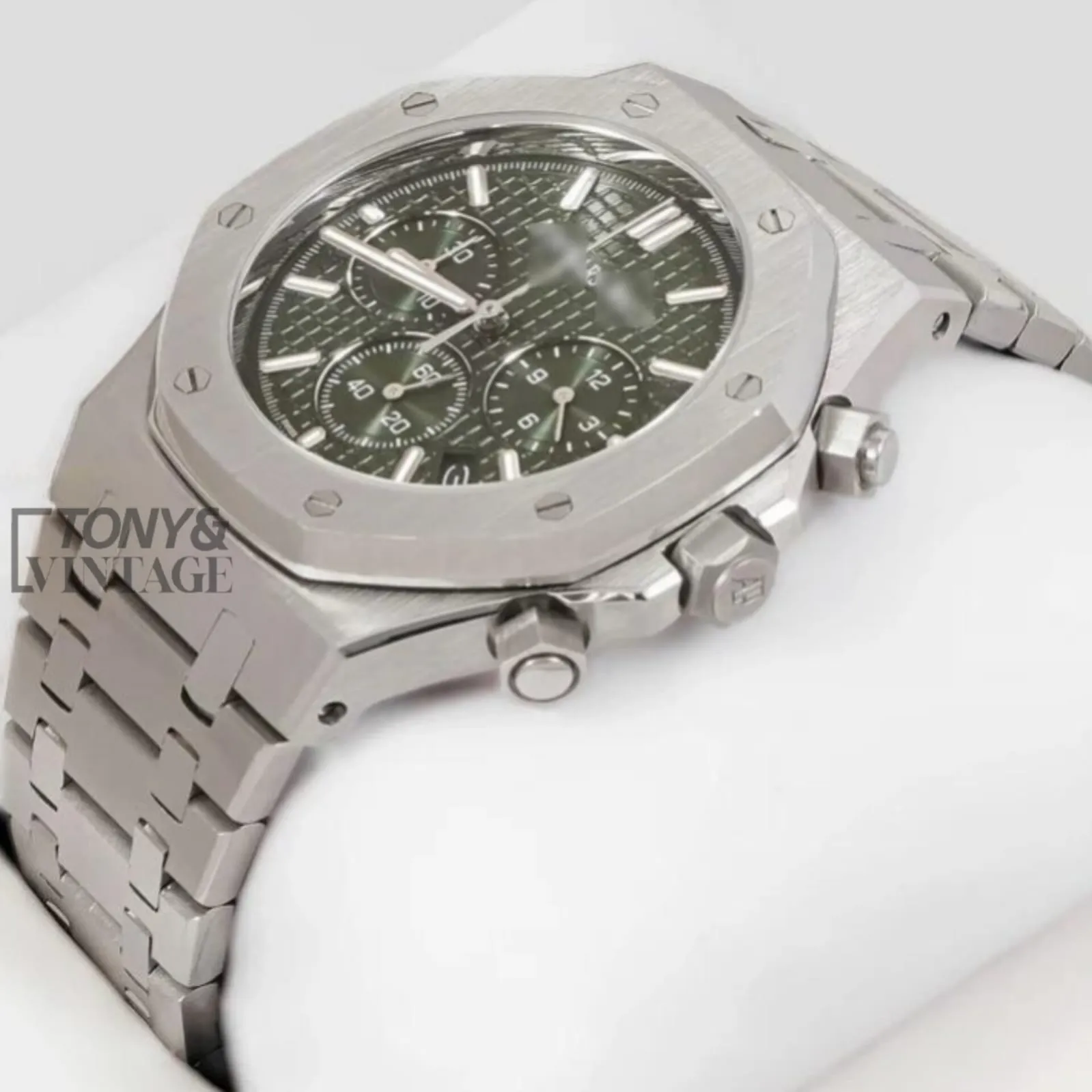 Chronograph Silver Green Dial Chain Watch