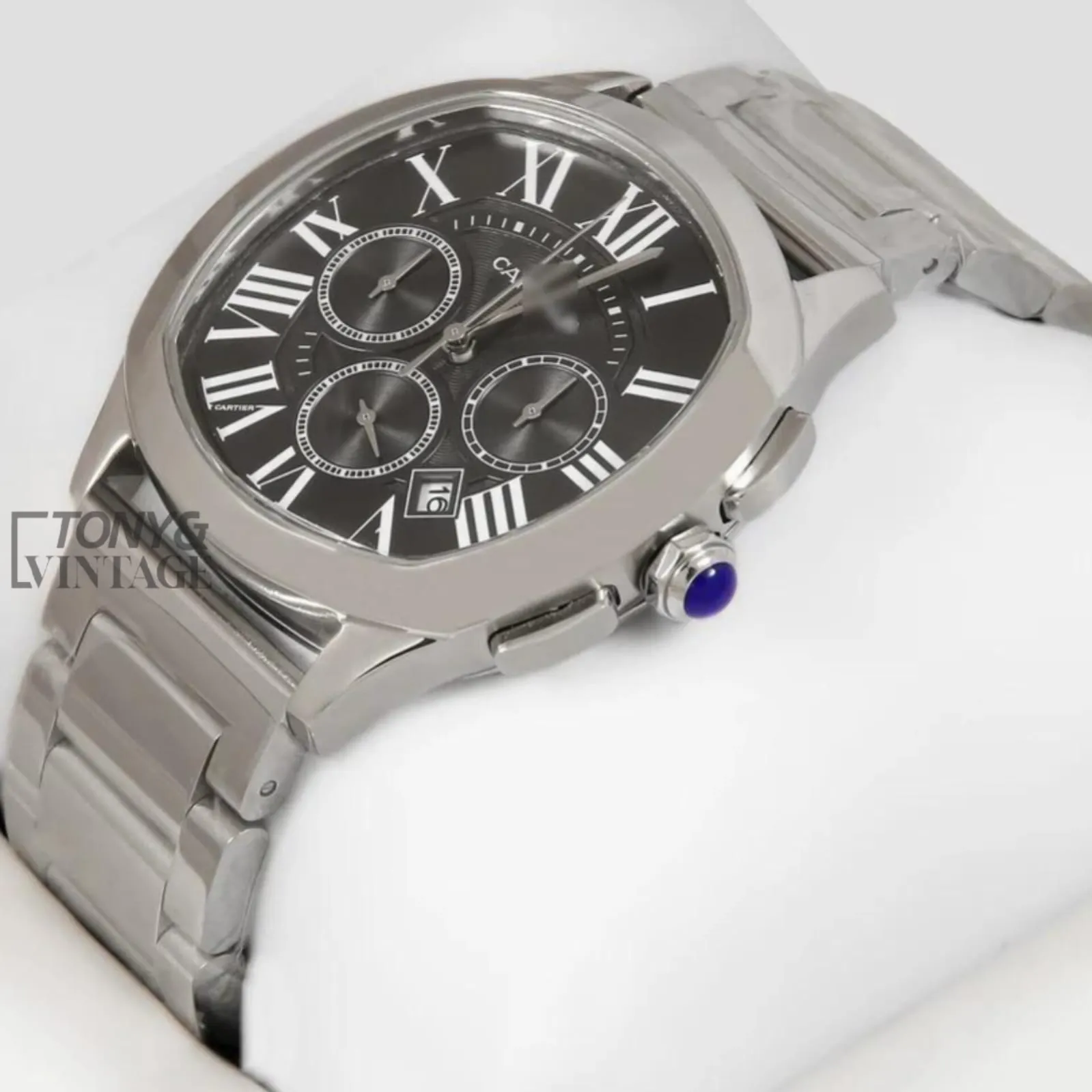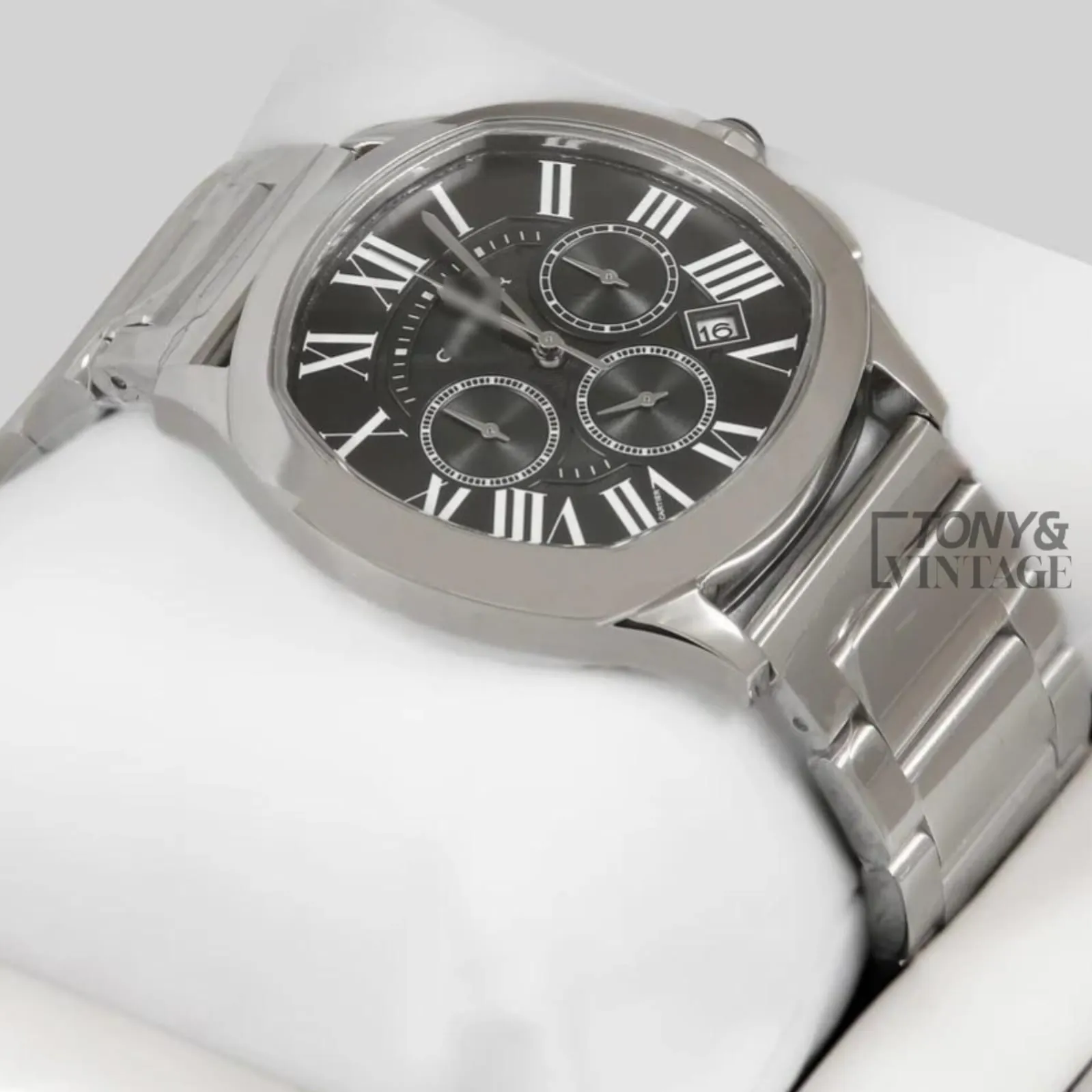 Chronograph Silver Watch With Black Dial and ChainChronograph Silver Watch With Black Dial and Chain