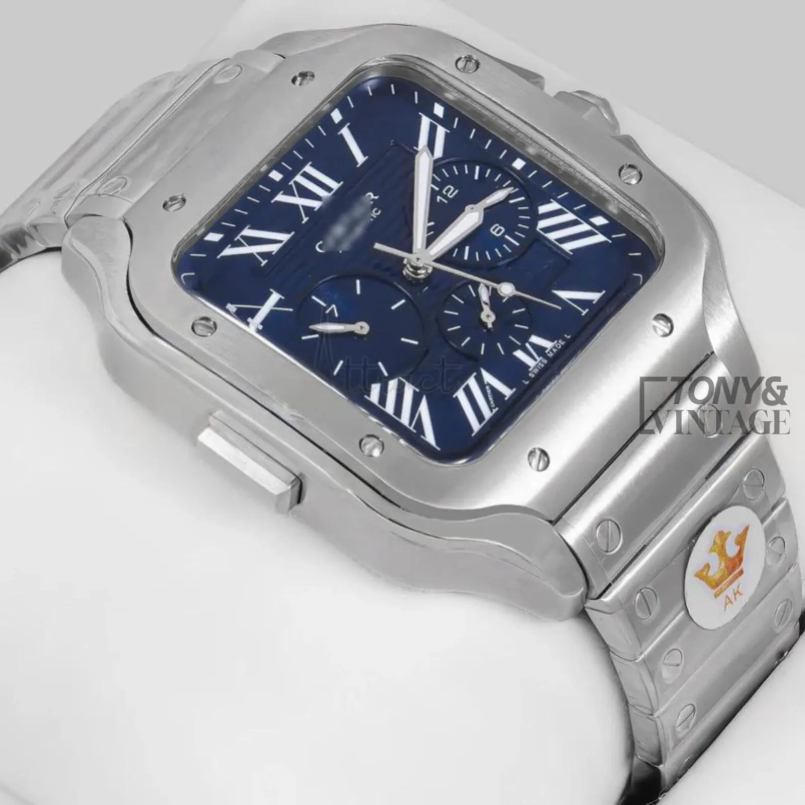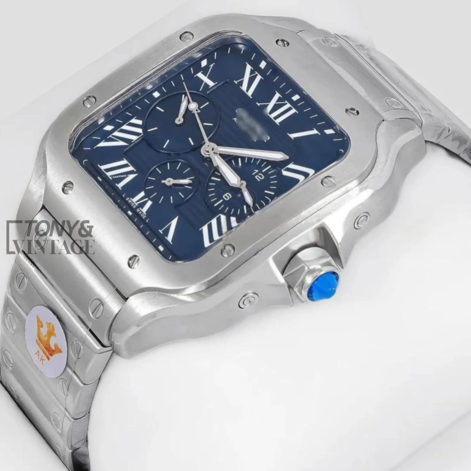 Chronograph Silver Watch with Blue Dial and Chain Strap