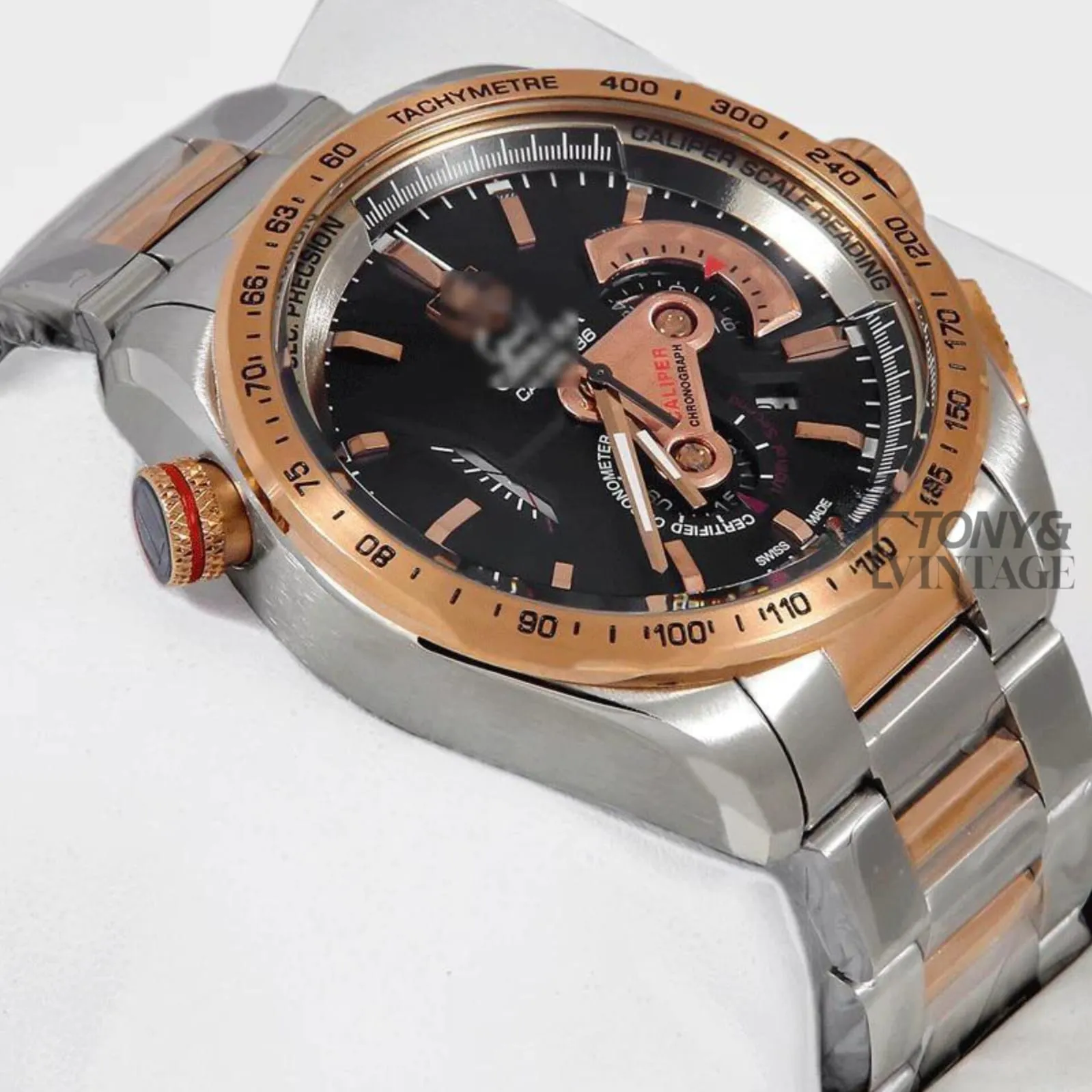 “Chronograph Two-Tone Rose Gold Watch with Black Dial “
