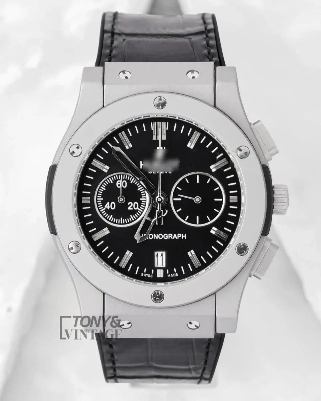 Chronograph Watch in Silver Matt With Black Dial and Leather Strap