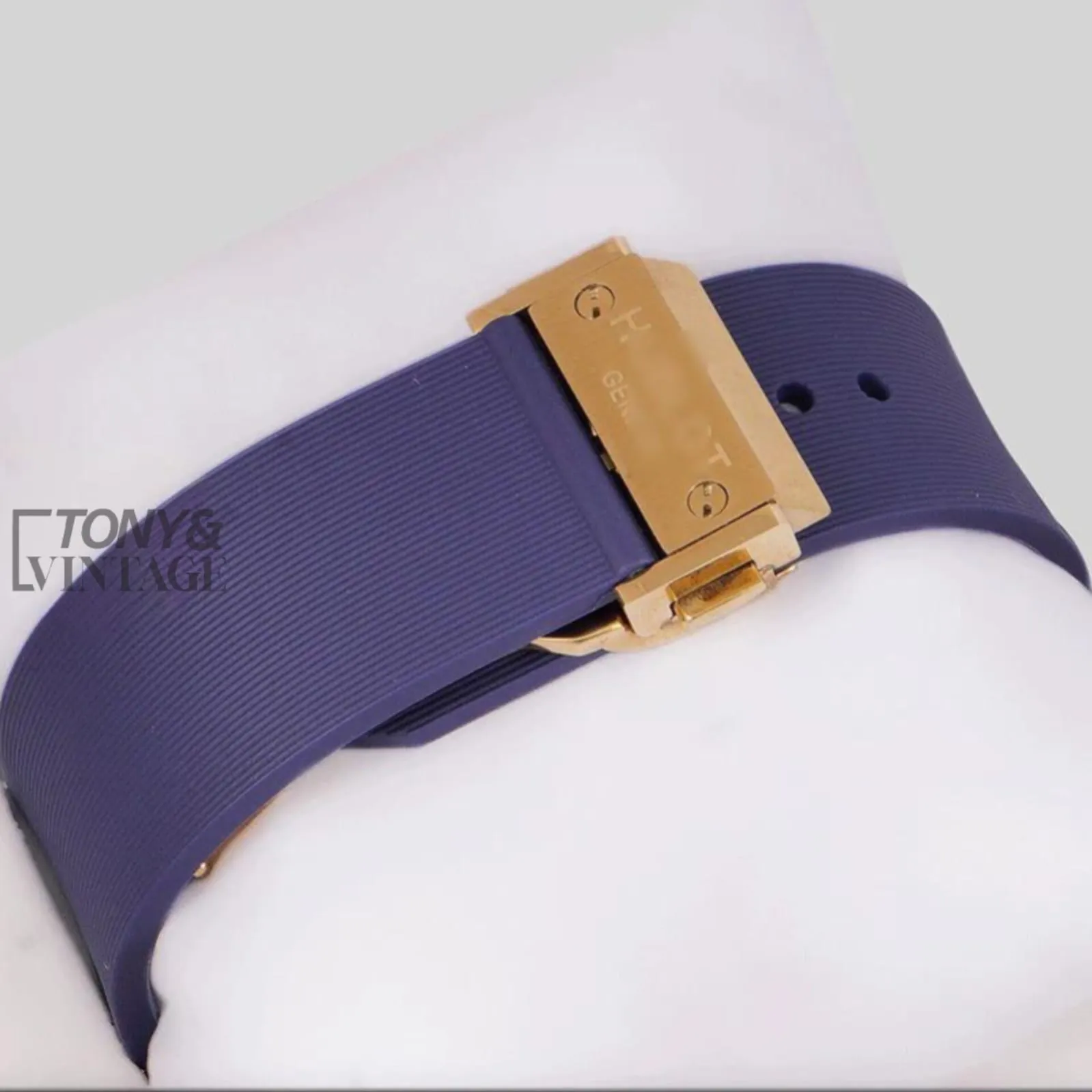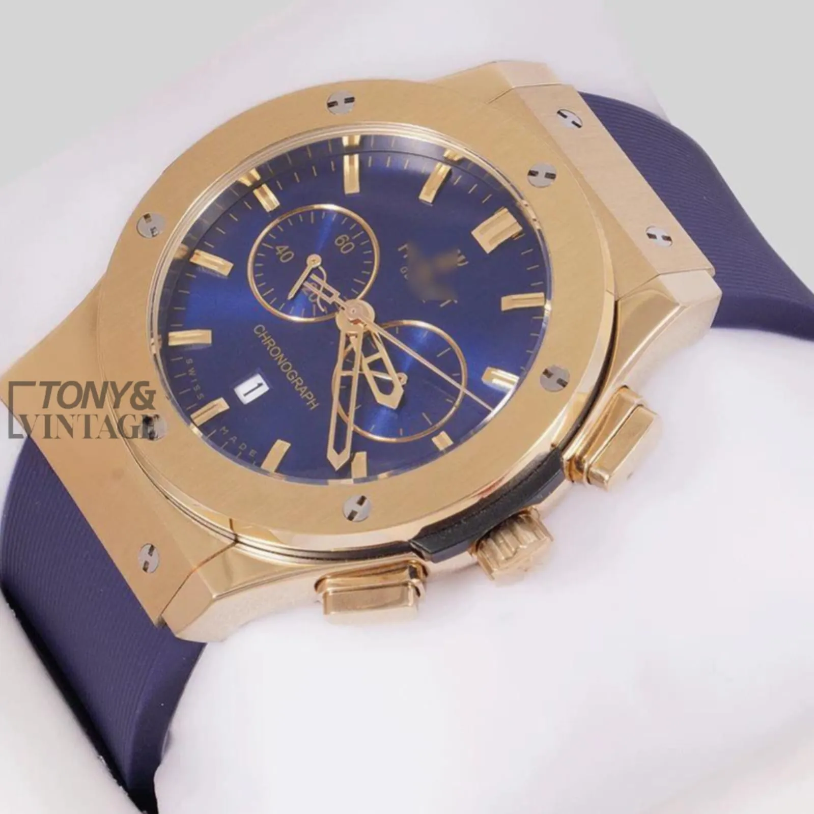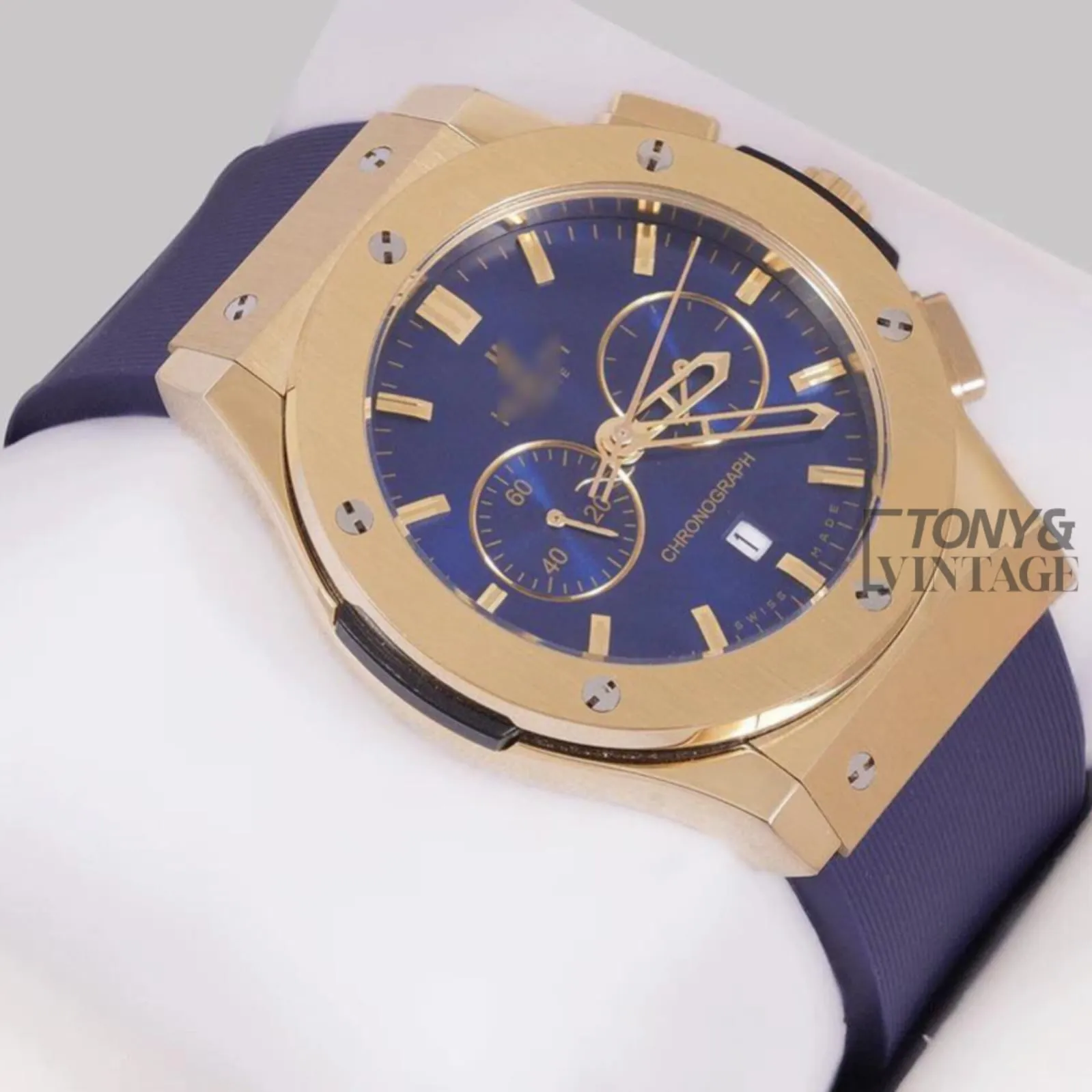 Chronograph Yellow Gold Watch with Blue Dial and PVC Strap
