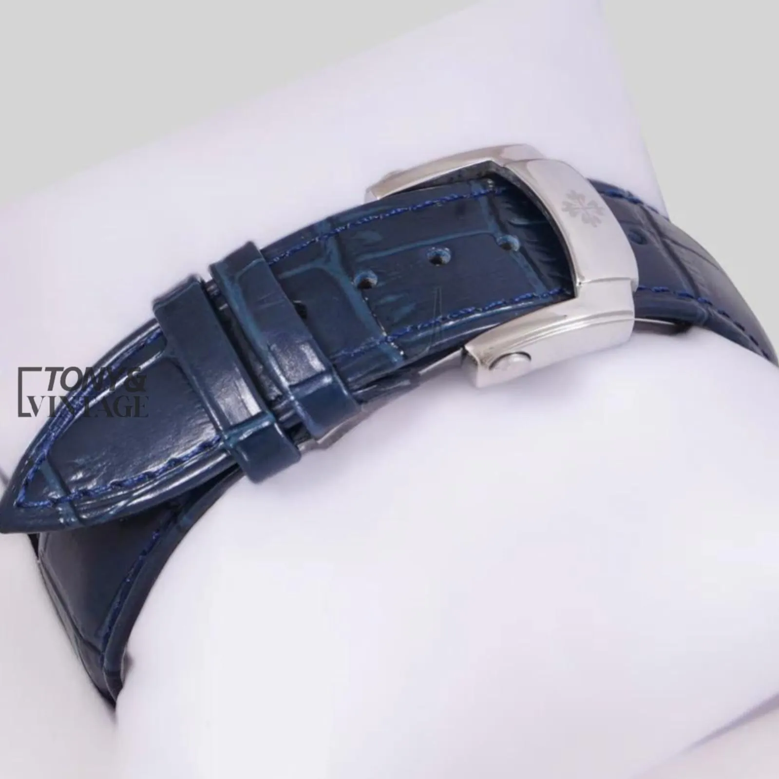Moon Phase Chronograph Silver Watch with Blue Dial and Strap