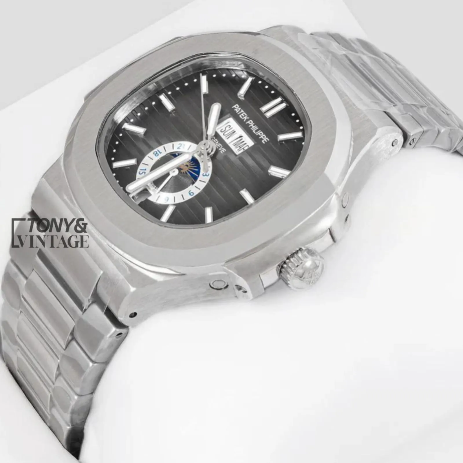Be the first to review “Moon Phase Silver Automatic Watch with Charcoal Gray Dial” Cancel reply