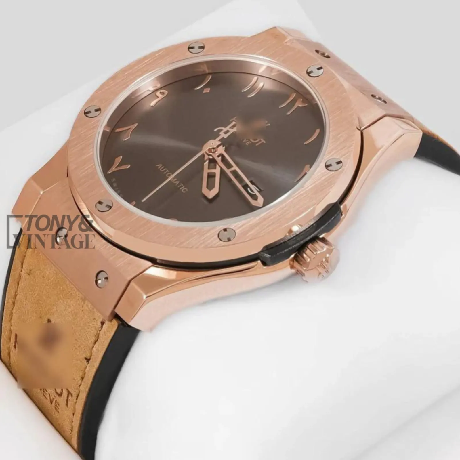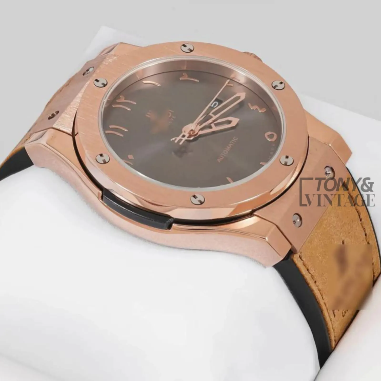 Rose Gold Automatic Watch with Arabic Index