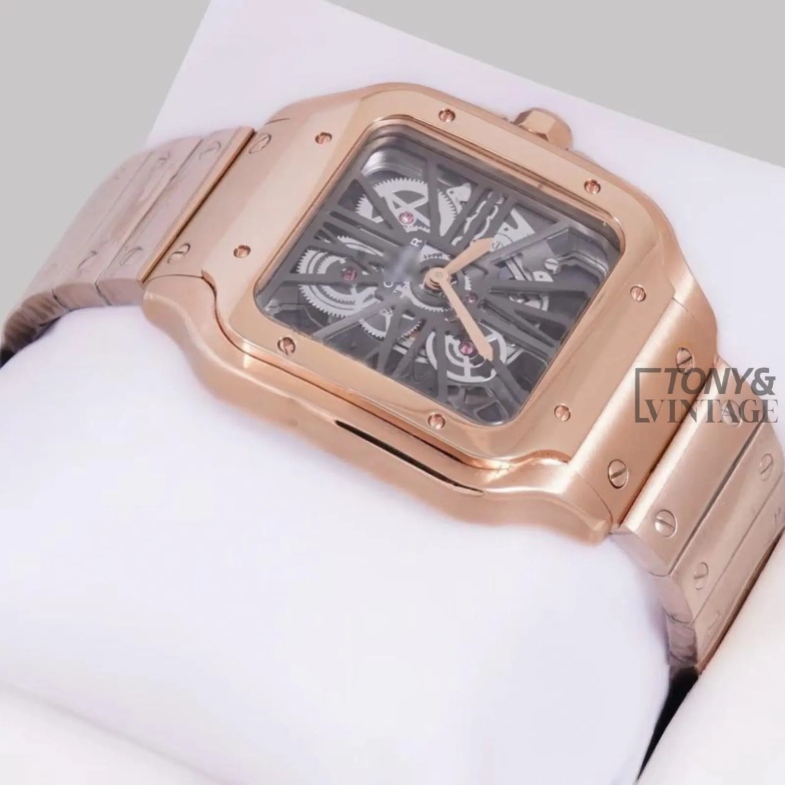 Rose Gold Automatic Watch with Black Skeleton DialRose Gold Automatic Watch with Black Skeleton Dial