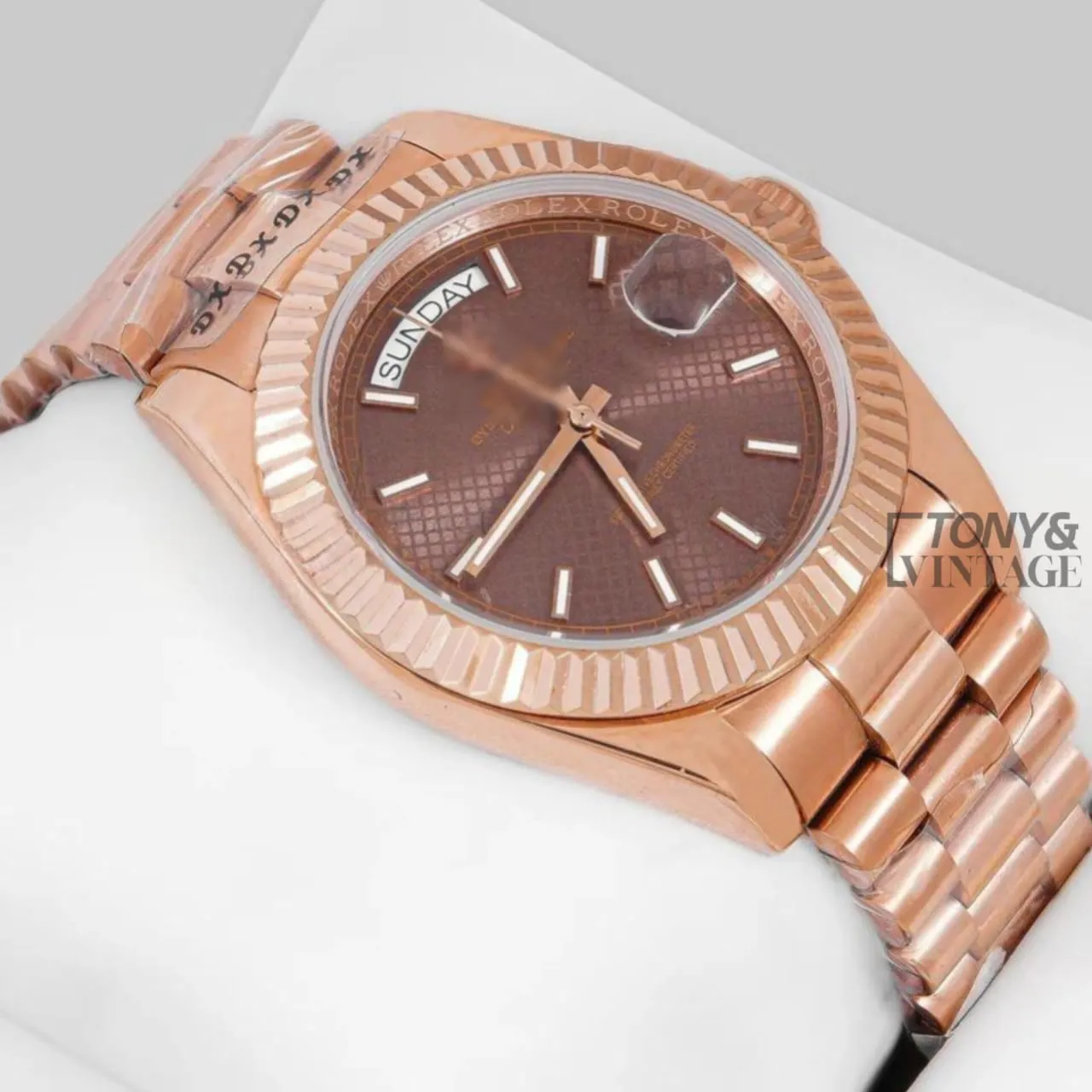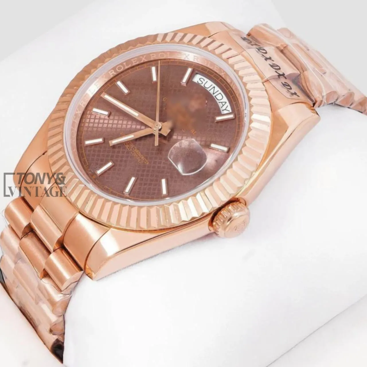 Rose Gold Brown Dial Fluted Bezel