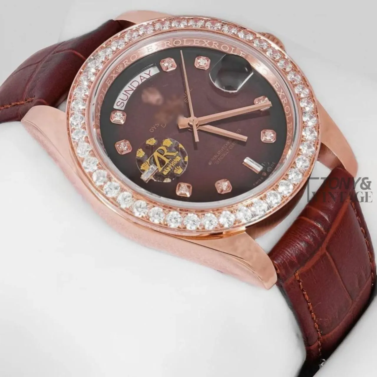 Rose Gold Case Brown Dial & Leather Strap Automatic Watch