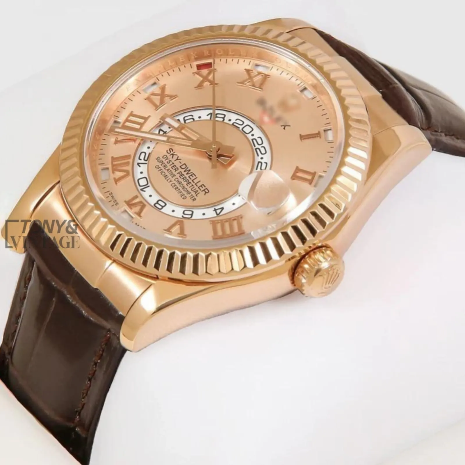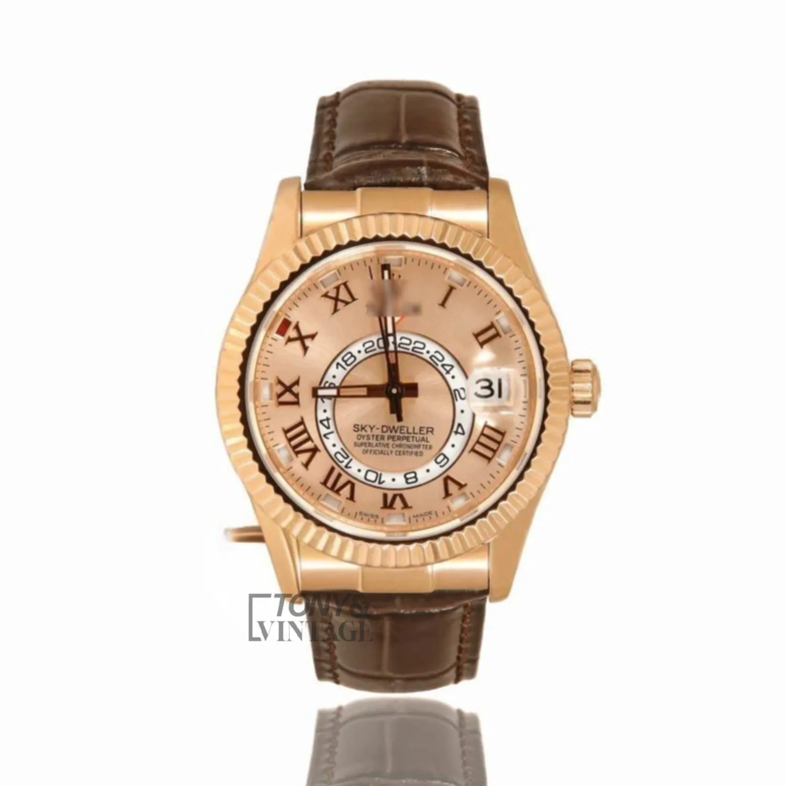 Rose Gold Case Dial & Brown Leather Strap Roman Numeral Automatic Watch