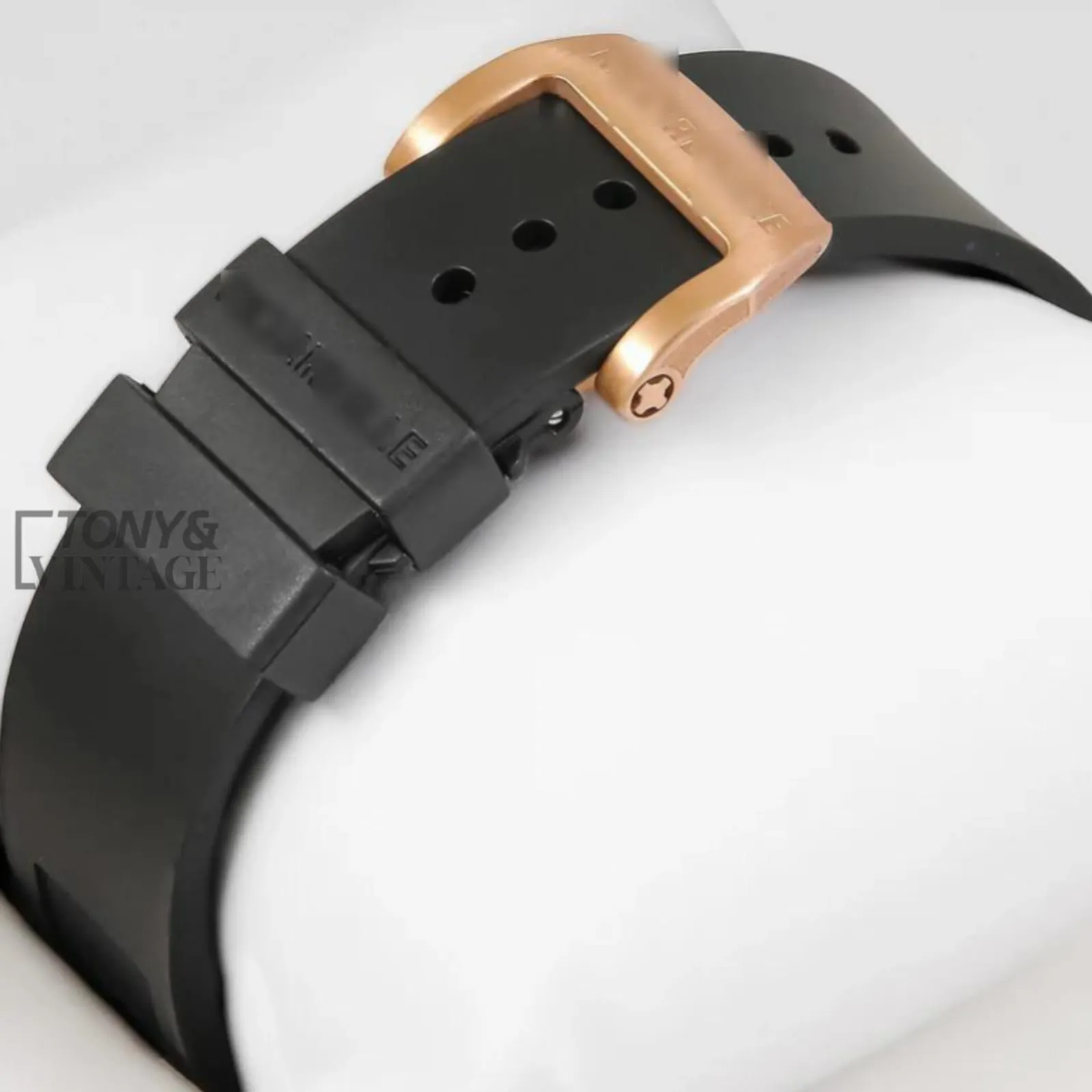 Rose Gold Chronograph Automatic Watch With Black Rubber Strap