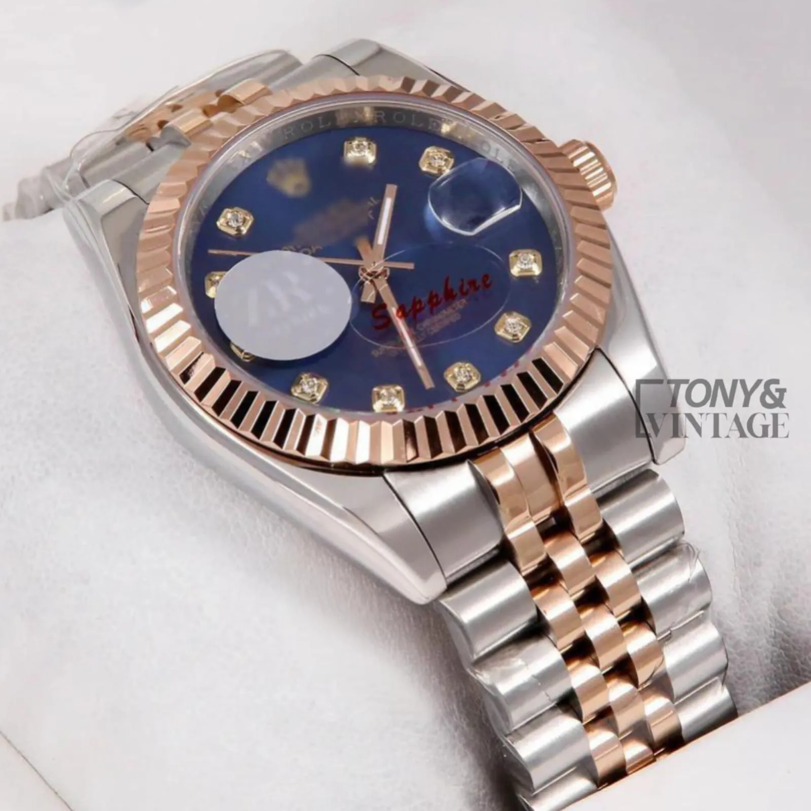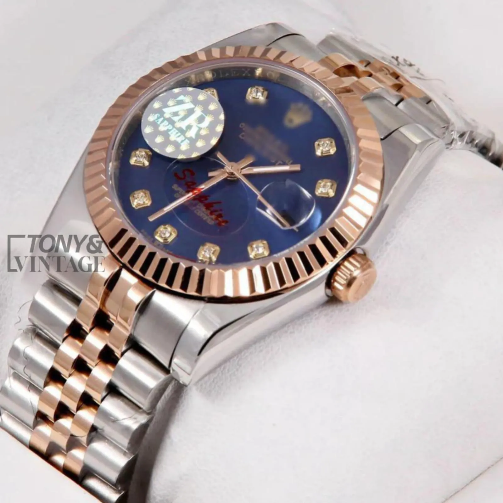 "Rose Gold Two Tone Blue Dial & Stone Numeral "“Rose Gold Two Tone Blue Dial & Stone Numeral “