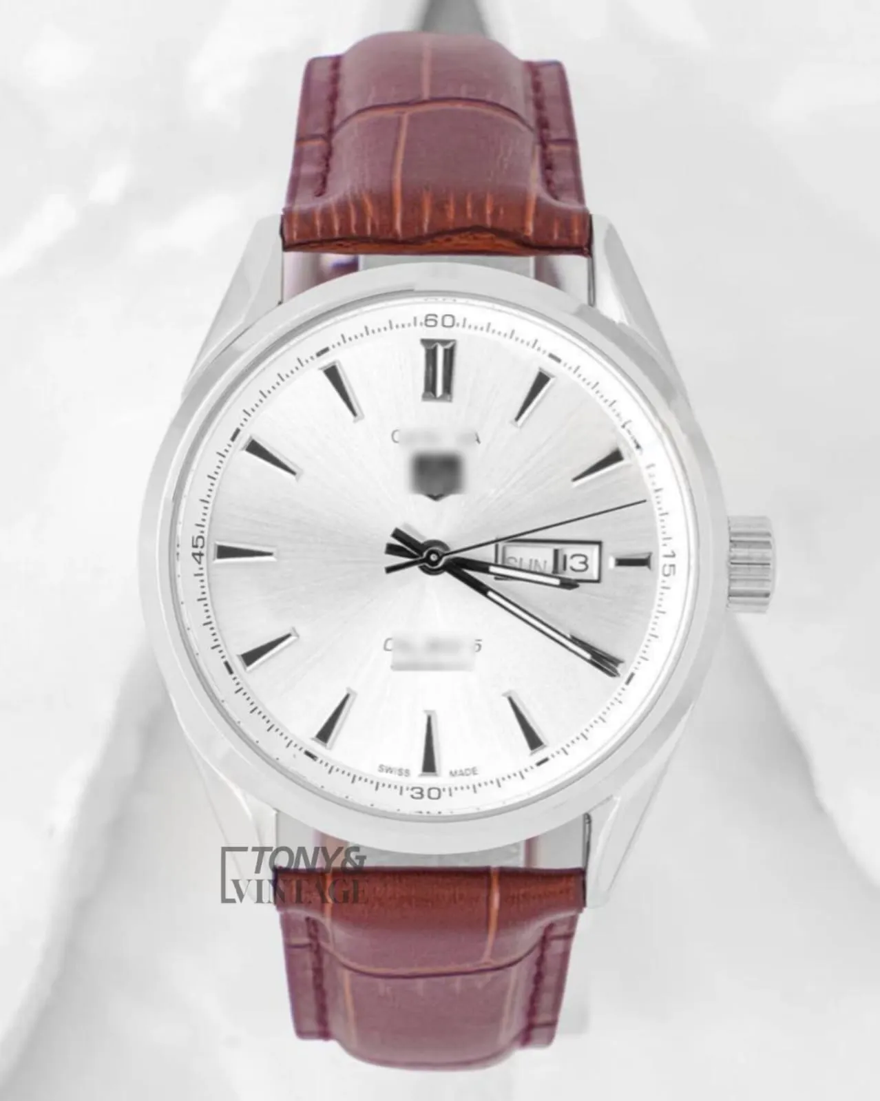 “Silver Automatic Watch With Dial and Leather Strap “