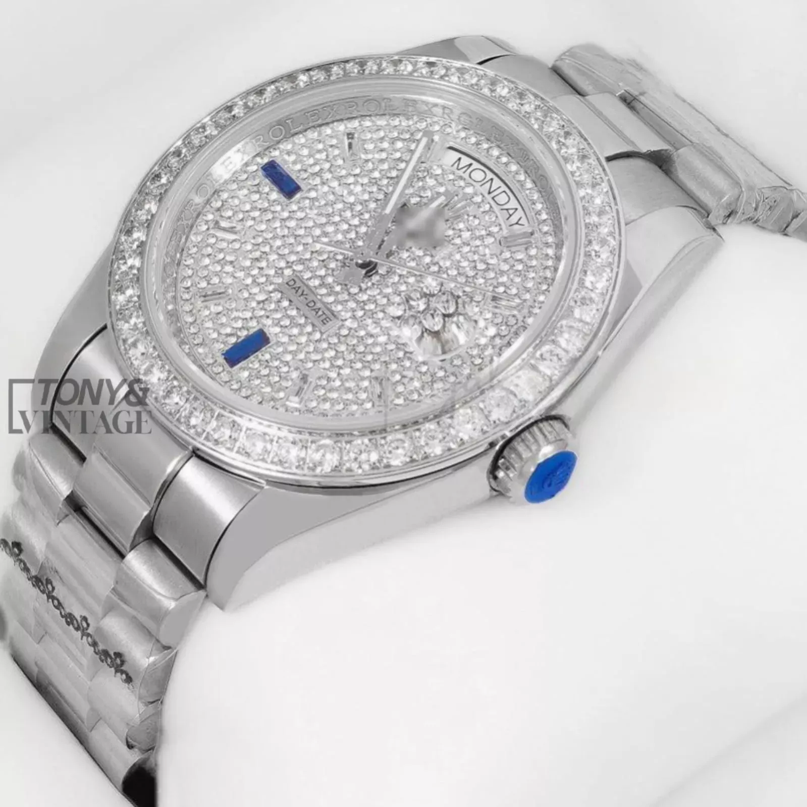“Silver Automatic Watch with Stone Dial and Bezel “