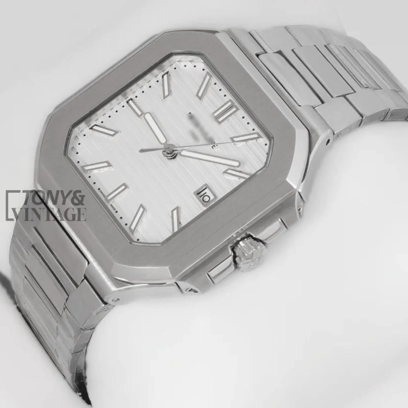 Silver Automatic Watch with White Dial