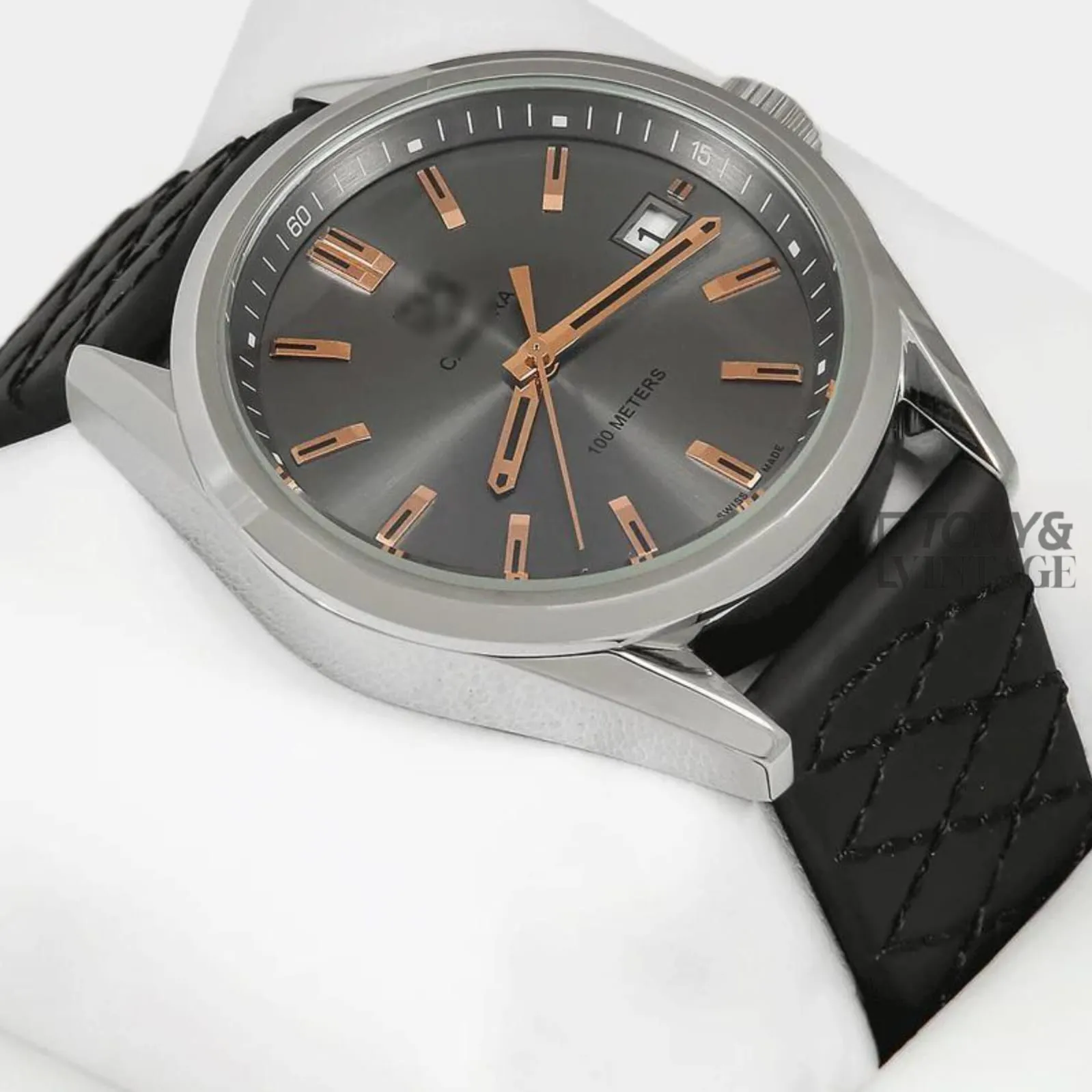 “Silver Case with Grey Dial & Black Rubber Strap Watch “