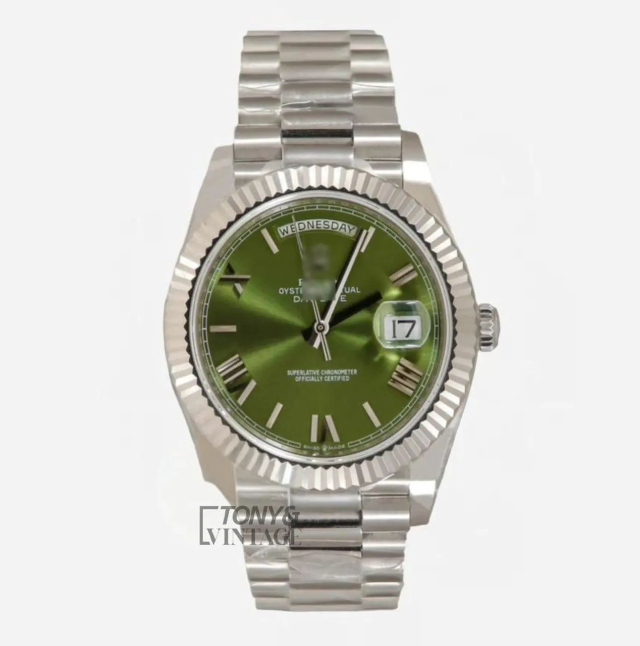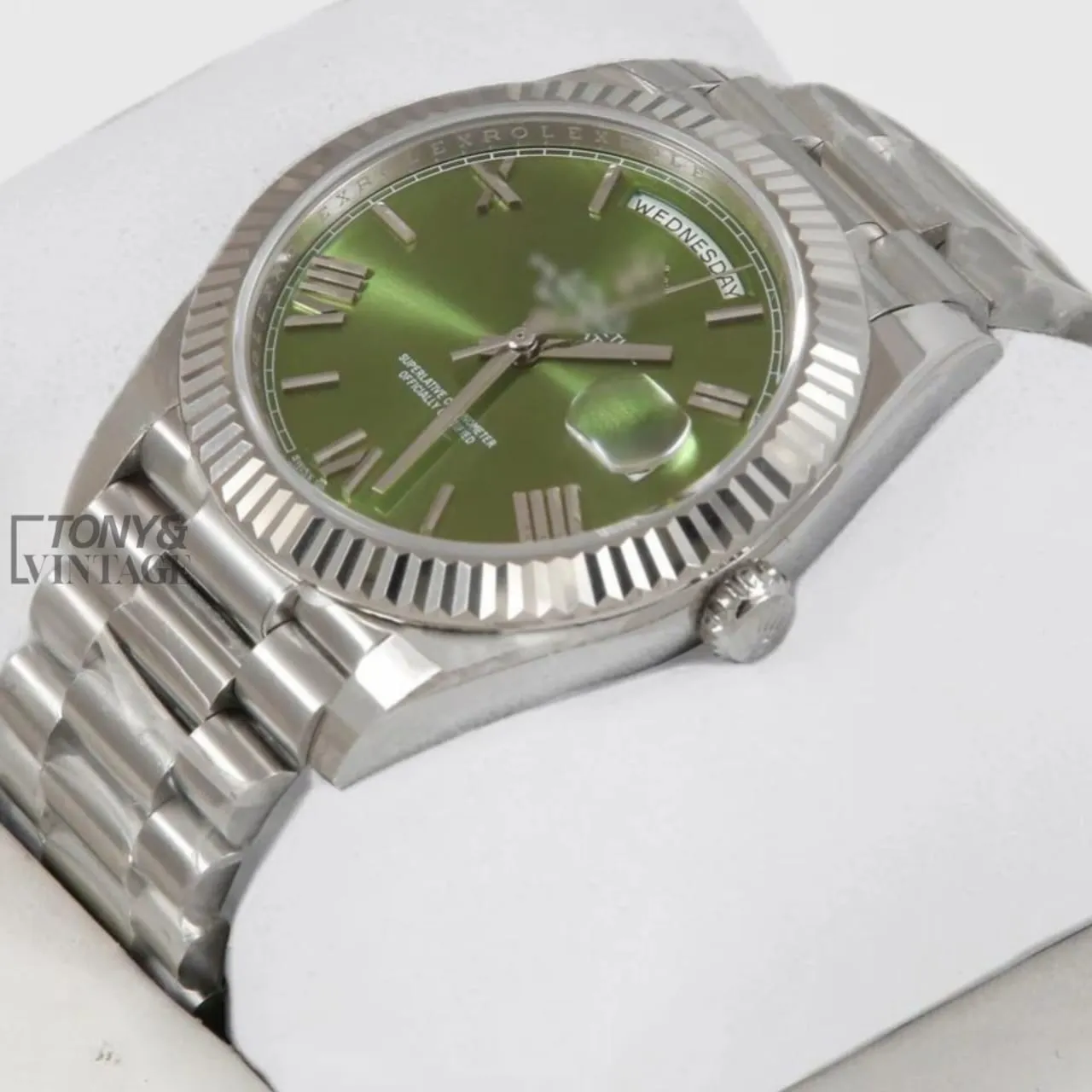 Silver Green Dial & Roman Numerals Automatic Watch