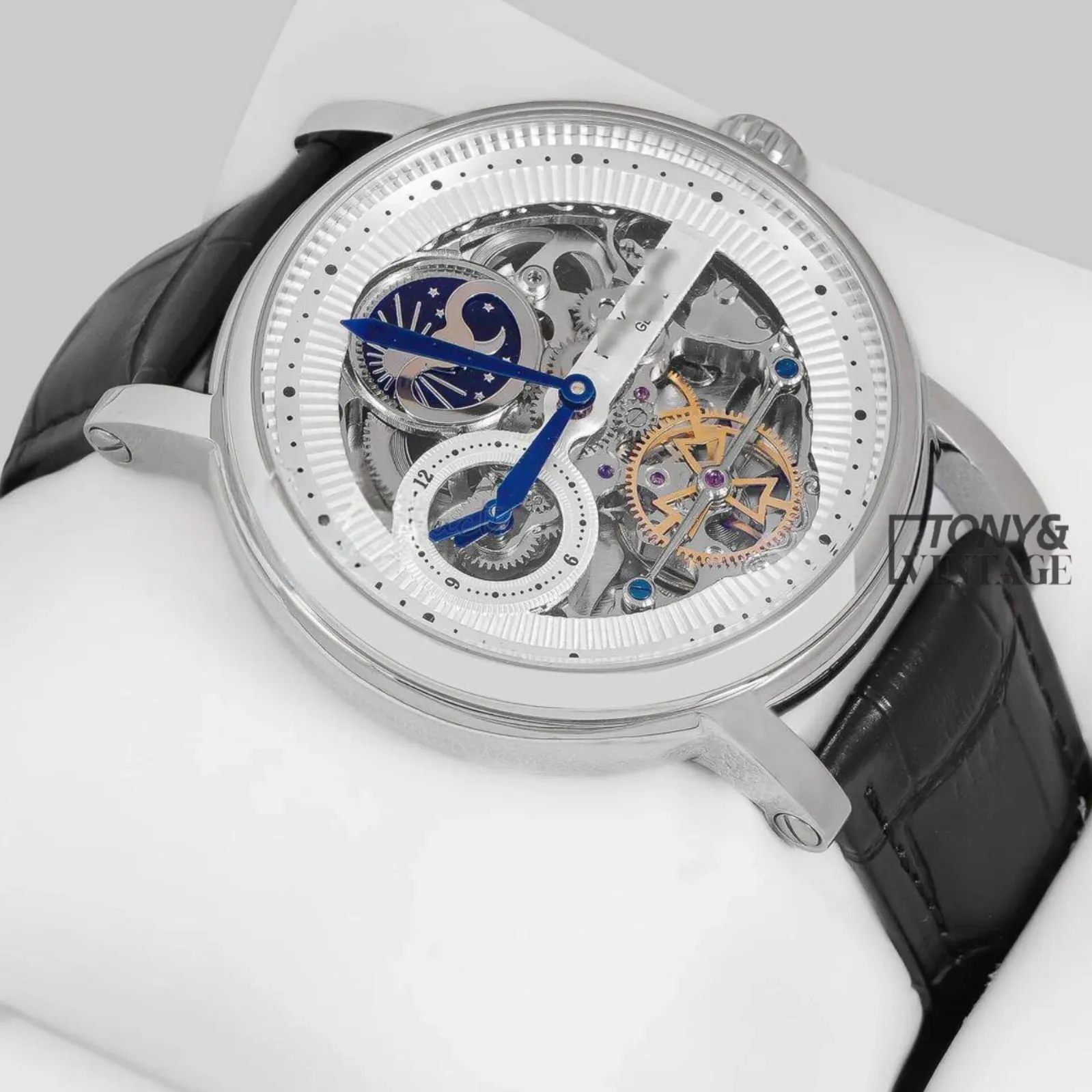 2 reviews for Tourbillon Moon Phase Silver Watch with Skeleton Dial and Leather Strap for Men