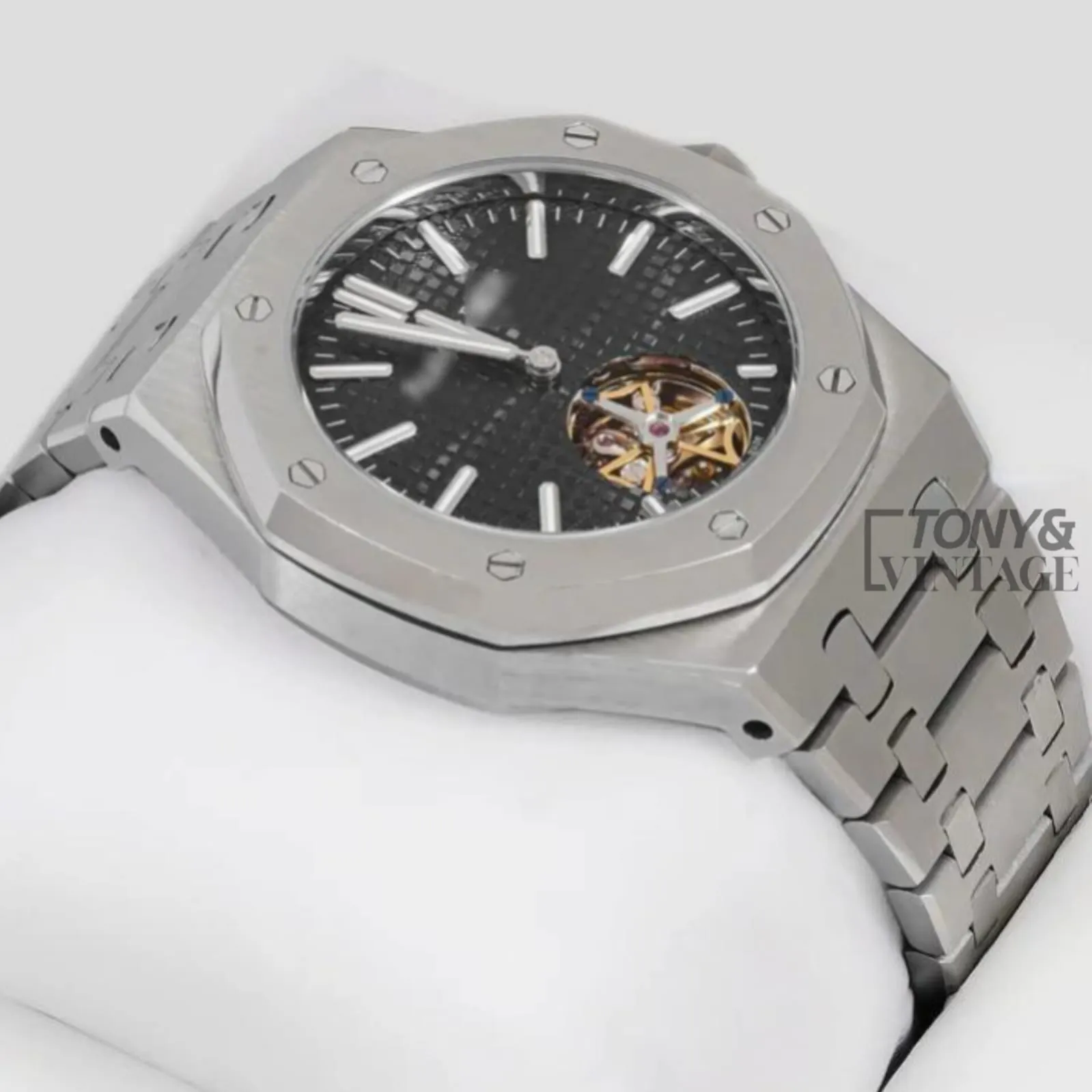 Be the first to review “Tourbillon Silver Black Dial Automatic Watch” Cancel reply