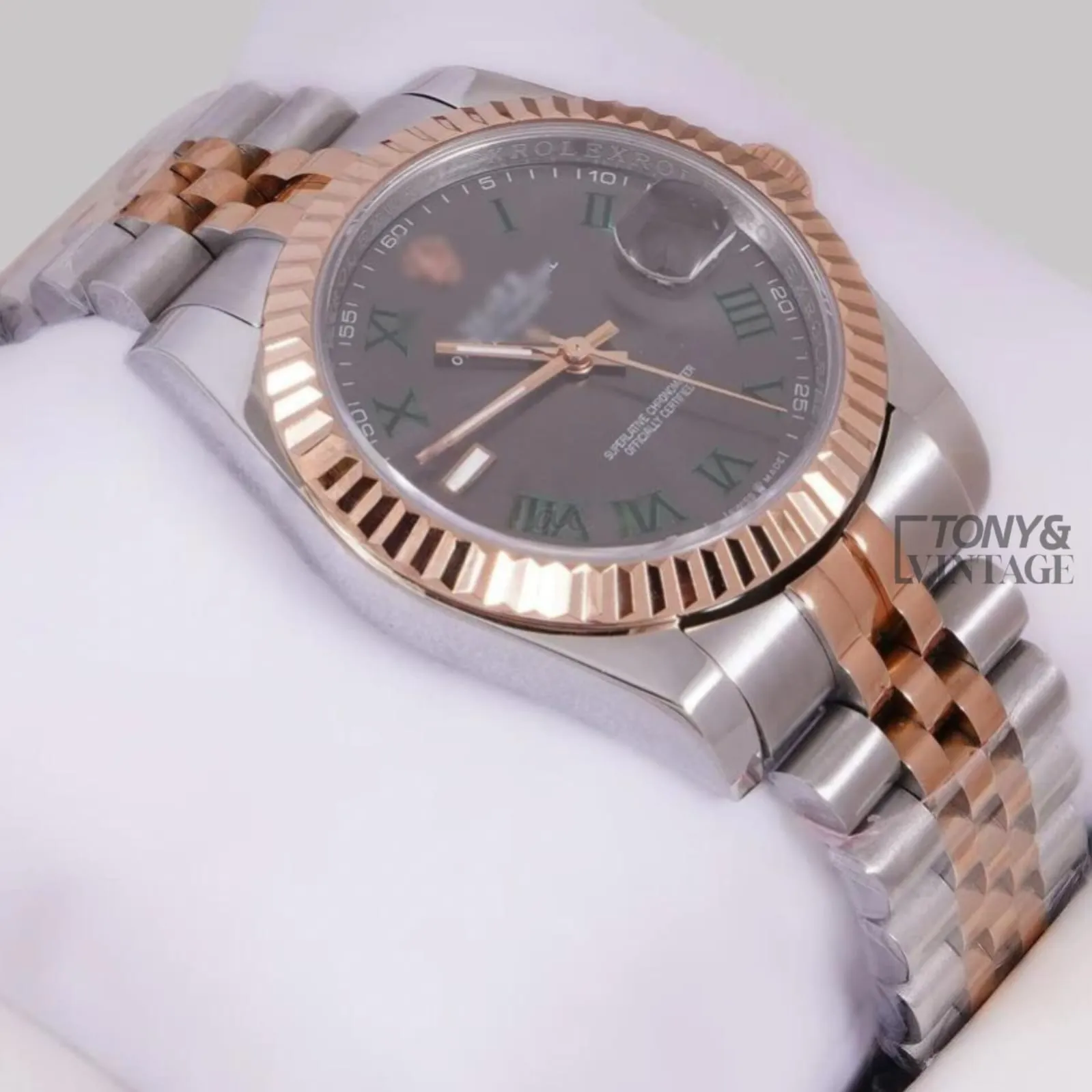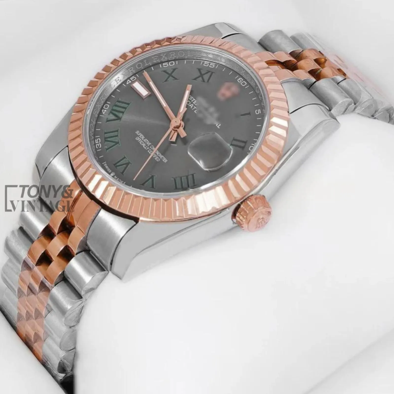Two Tone Rose Gold Grey Dial & Roman Index Automatic Watch