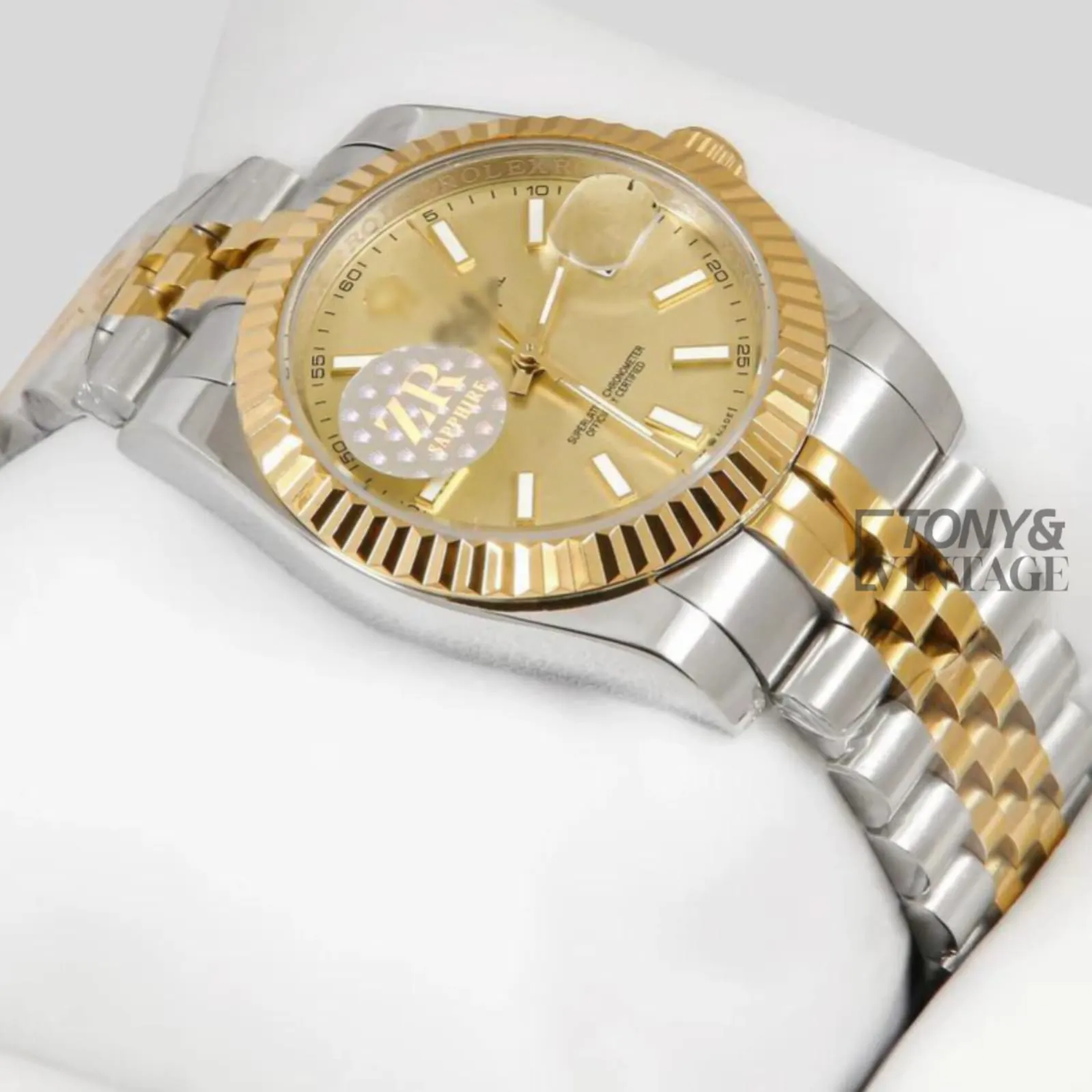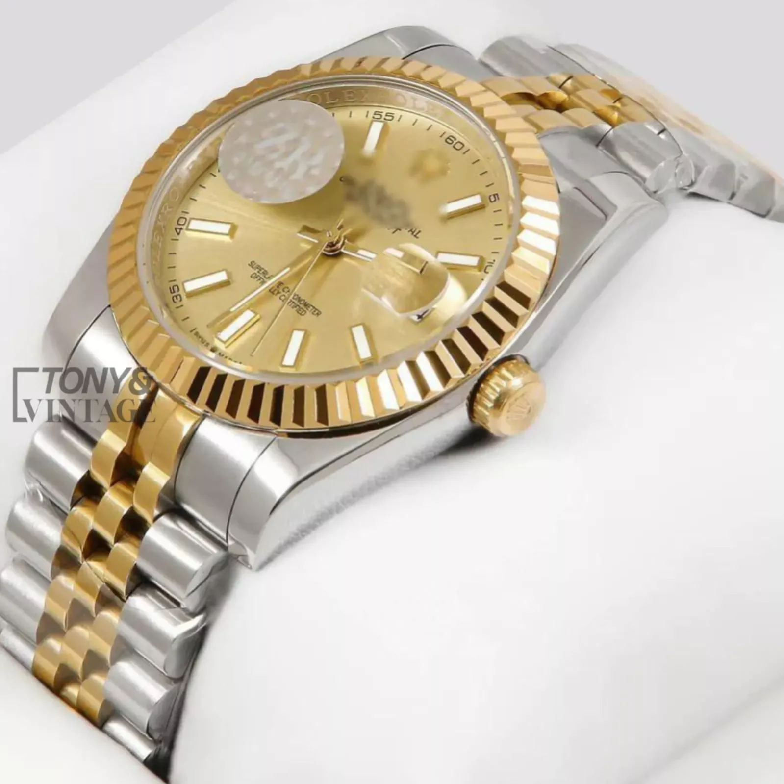 “Two-Tone Yellow Gold Automatic Watch with Fluted Bezel and Matching Dial “