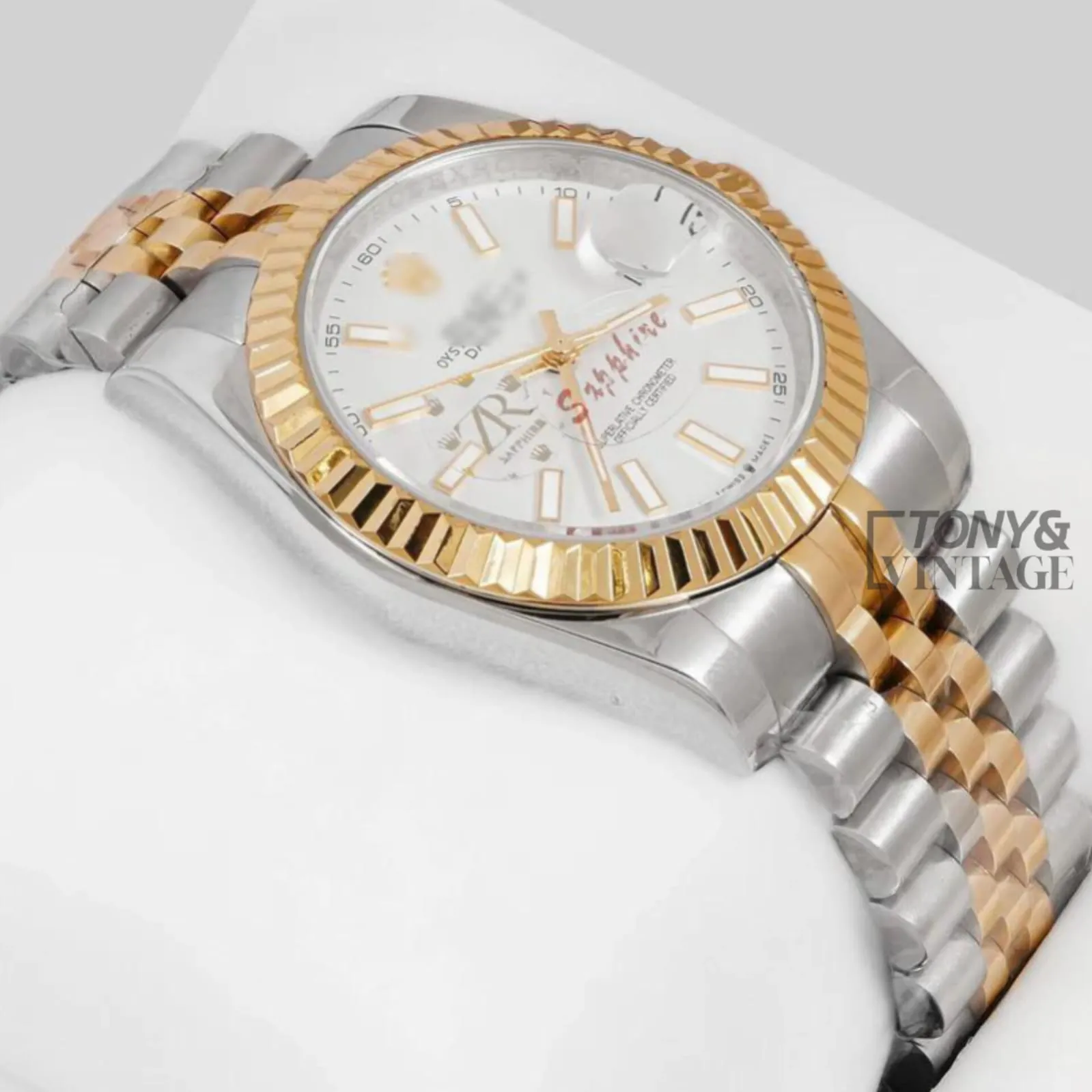 Be the first to review “Two-Tone Yellow Gold Automatic Watch with White Dial and Fluted Bezel” Cancel reply
