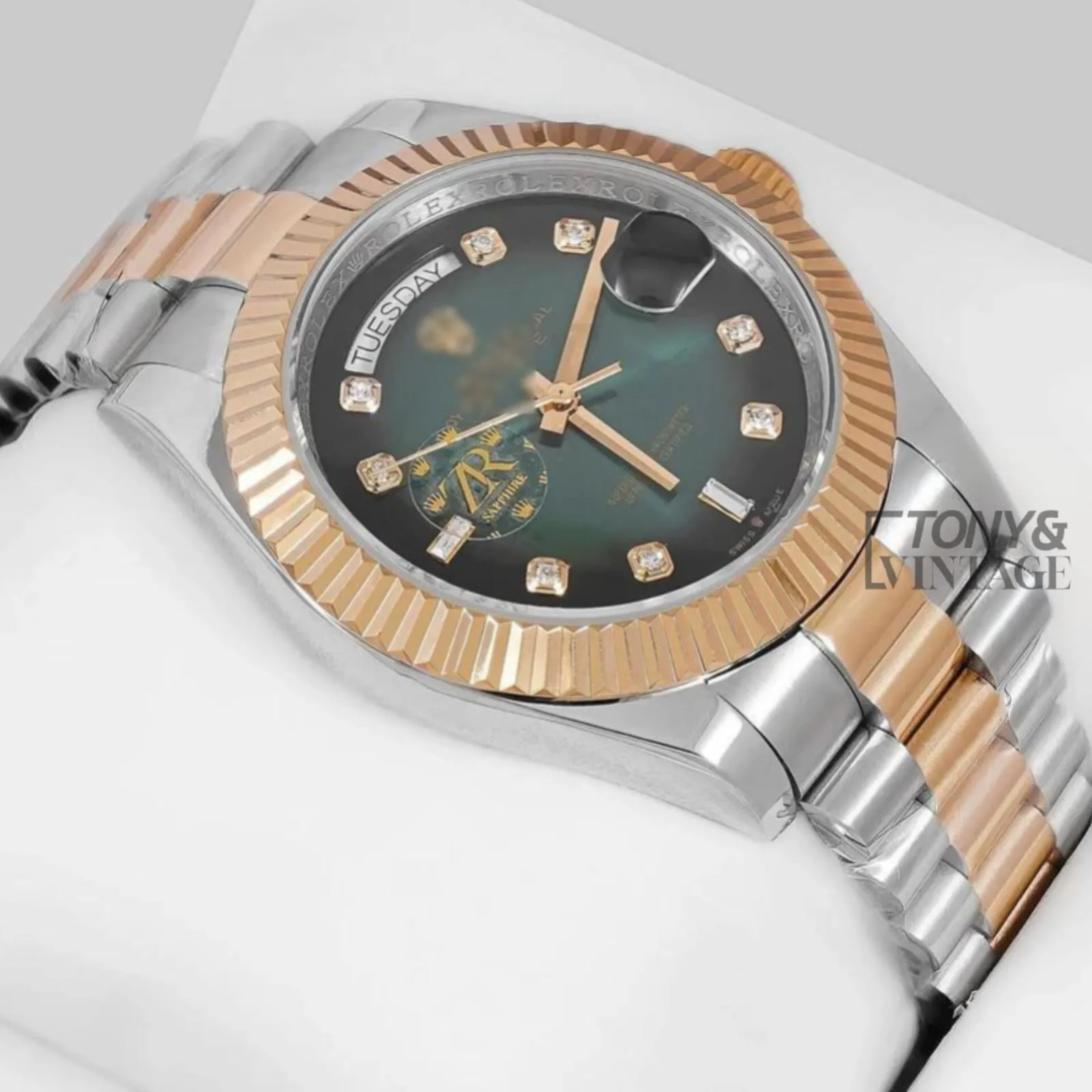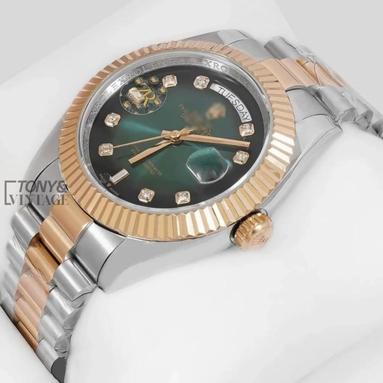 Two Tone Yellow Gold Green Dial