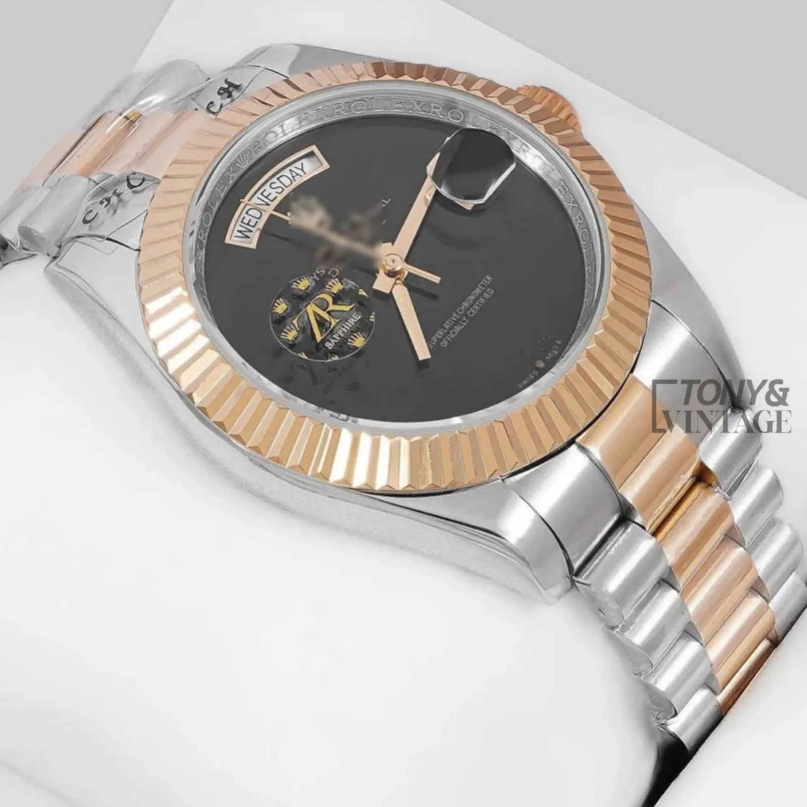 “Two Tone Yellow Gold Plain Black Dial Automatic Watch “