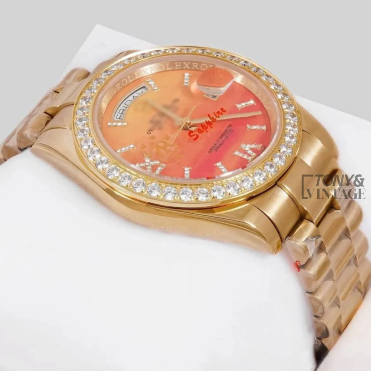 Be the first to review ““Yellow Gold Peach Dial Automatic Watch “” Cancel reply
