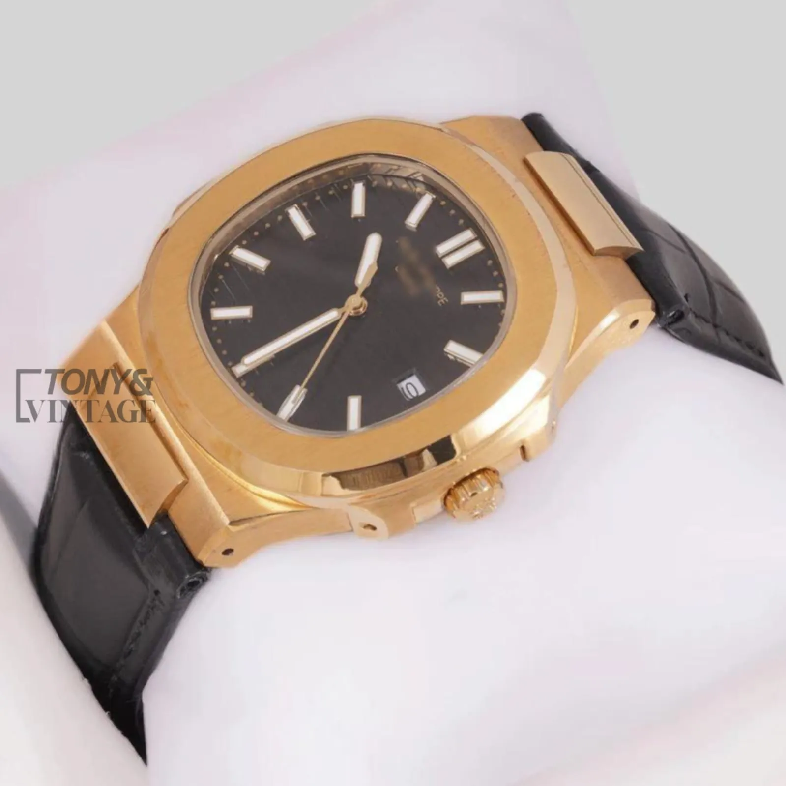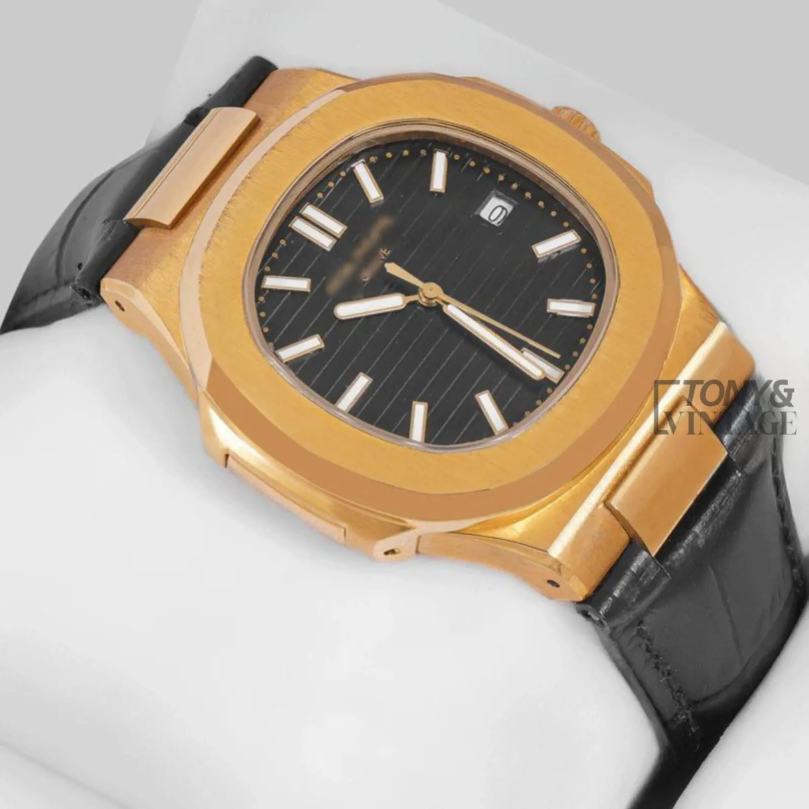2 reviews for Yellow Gold Watch with Black Dial and Leather Strap