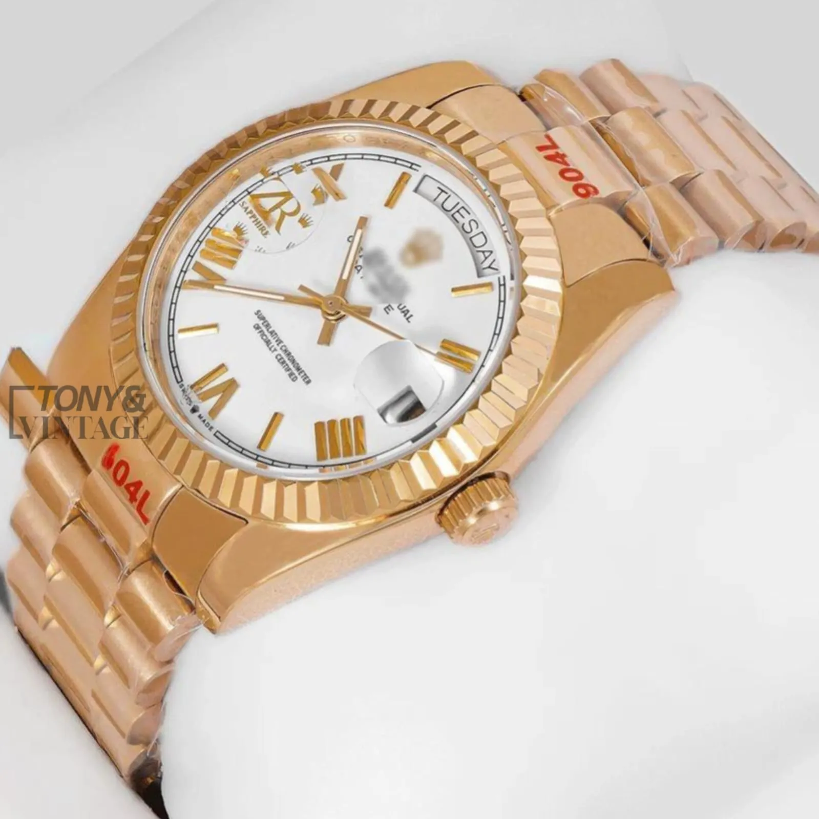 Yellow Gold White Dial Roman Figure Automatic Watch